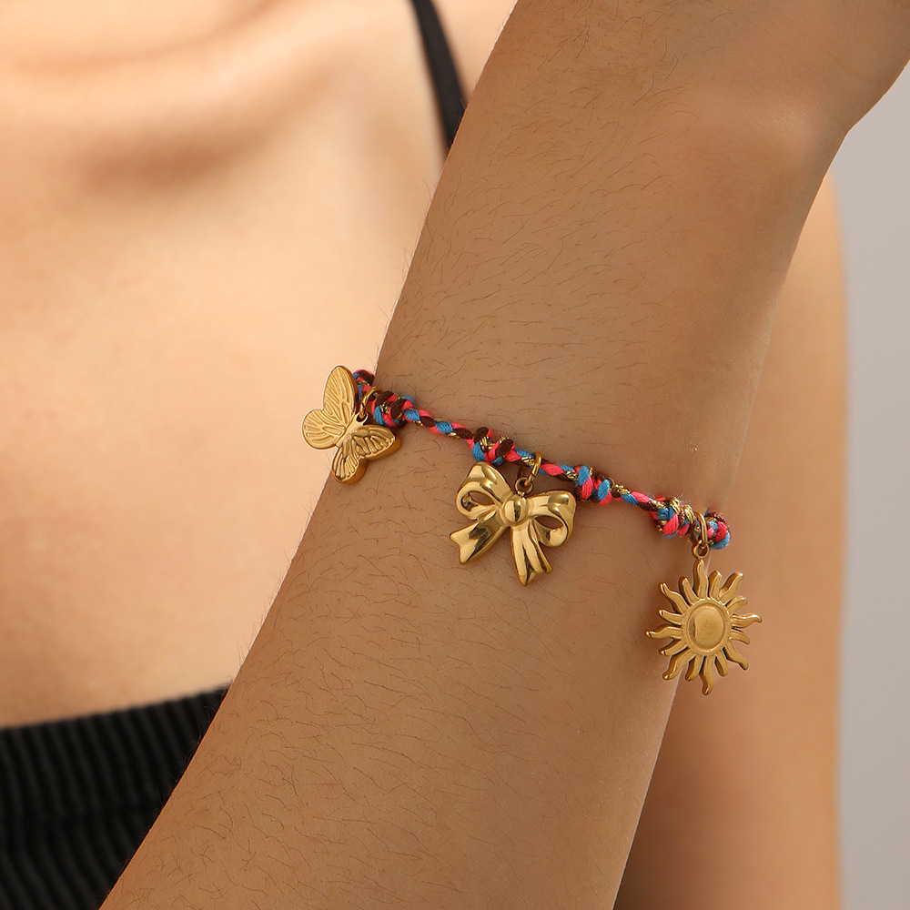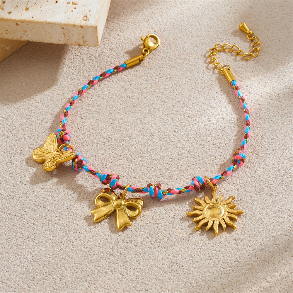 Bracciale gioielli in acciaio inossidabile, 304 acciaio inox, with Filo di cotone, placcato color oro, gioielli di moda & fatto a mano & per la donna, Venduto da PC