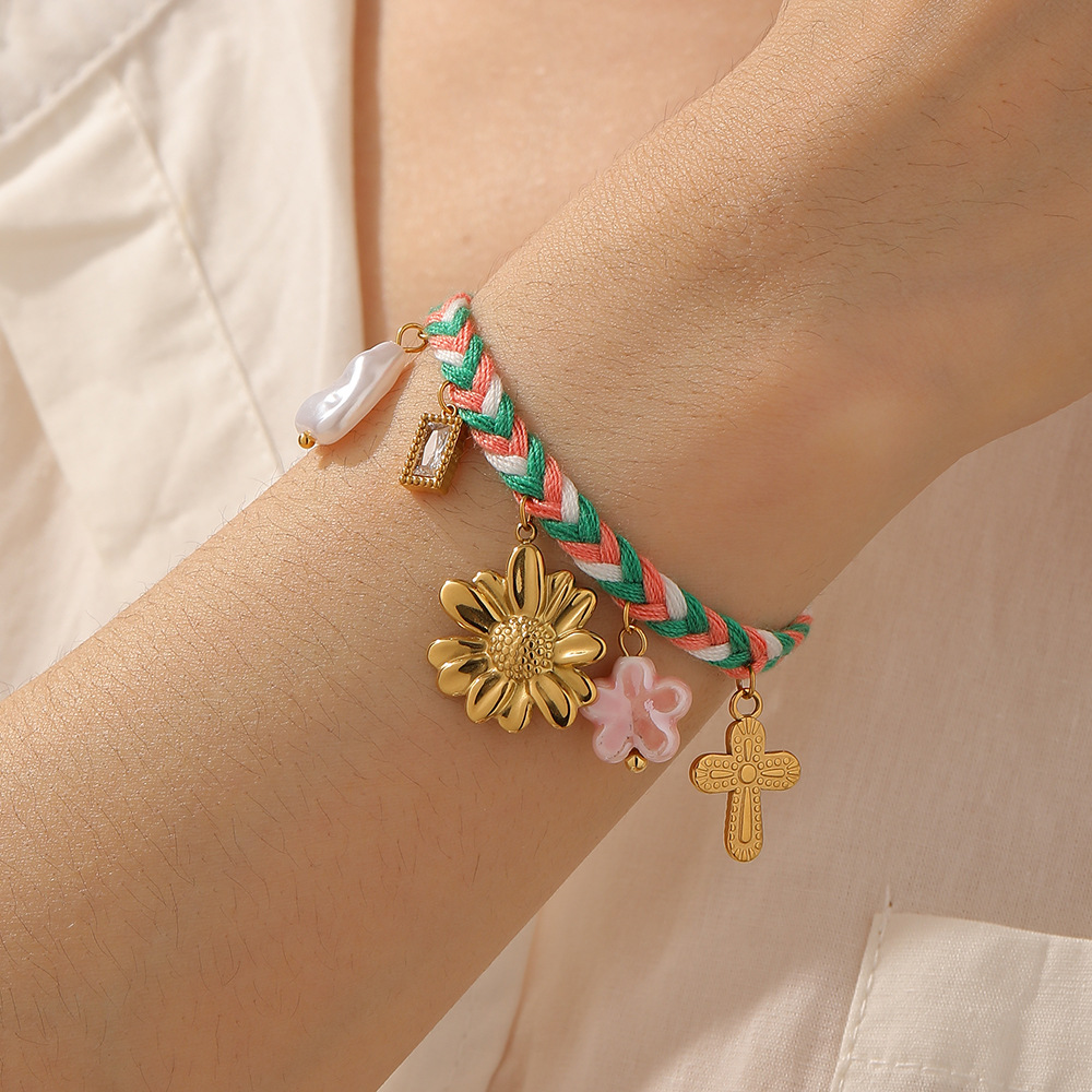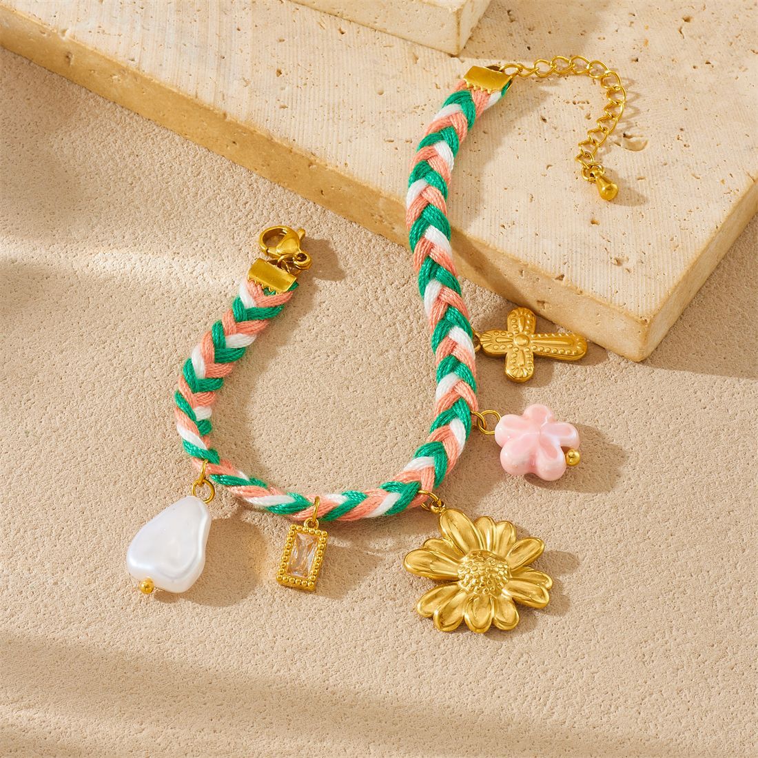 Bracciale gioielli in acciaio inossidabile, 304 acciaio inox, with porcellana, placcato color oro, fatto a mano & stili diversi per la scelta & per la donna, Venduto da PC