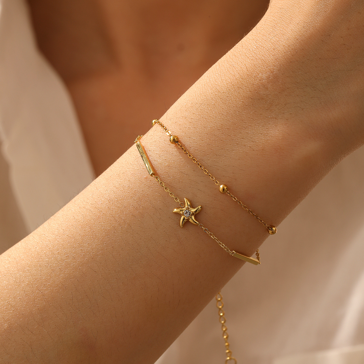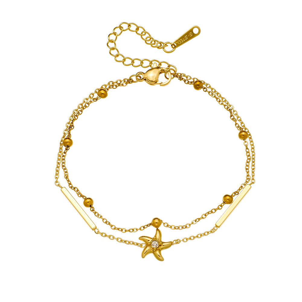 Bracciale gioielli in acciaio inossidabile, 304 acciaio inox, placcato color oro, Doppio strato & per la donna & con strass, Venduto da PC