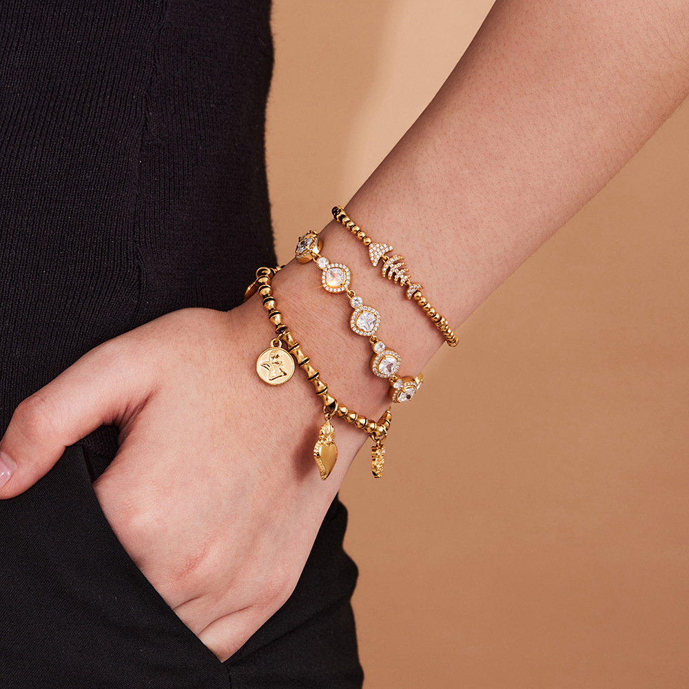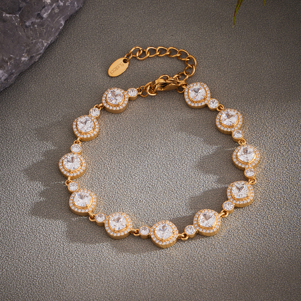 Bracciale gioielli in acciaio inossidabile, 304 acciaio inox, placcato color oro, gioielli di moda & Micro spianare cubic zirconia, nessuno, Venduto da PC