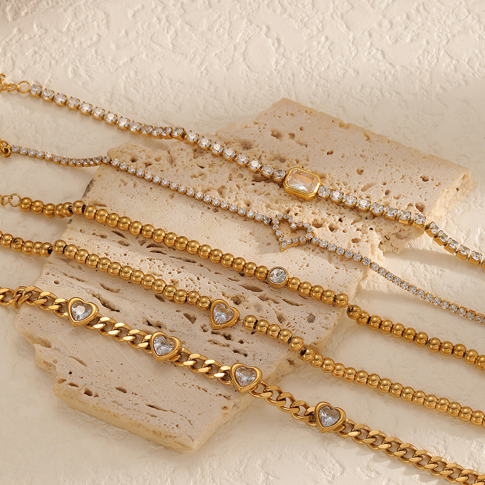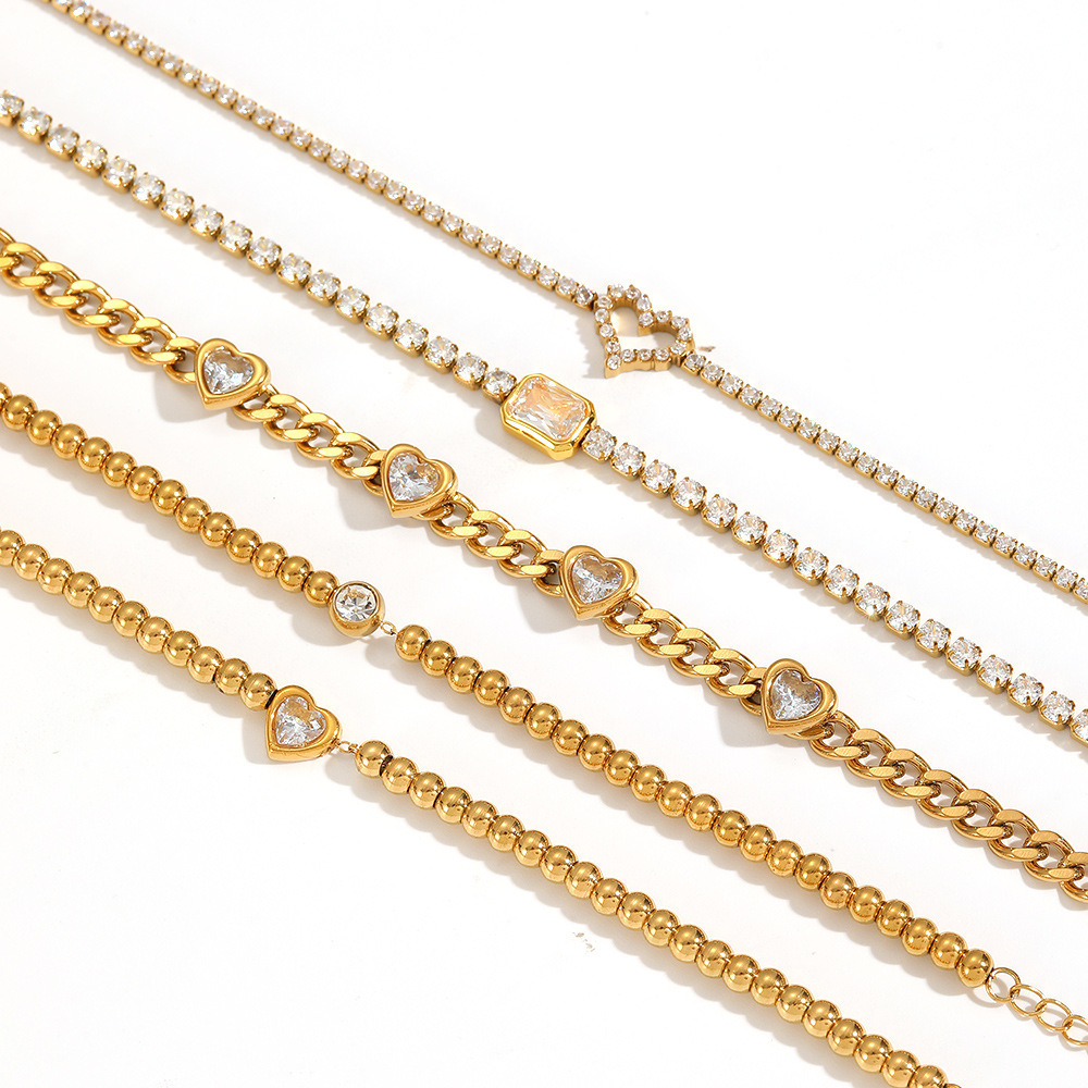 Bracciale gioielli in acciaio inossidabile, 304 acciaio inox, placcato, gioielli di moda & Micro spianare cubic zirconia & con strass, nessuno, Venduto da PC
