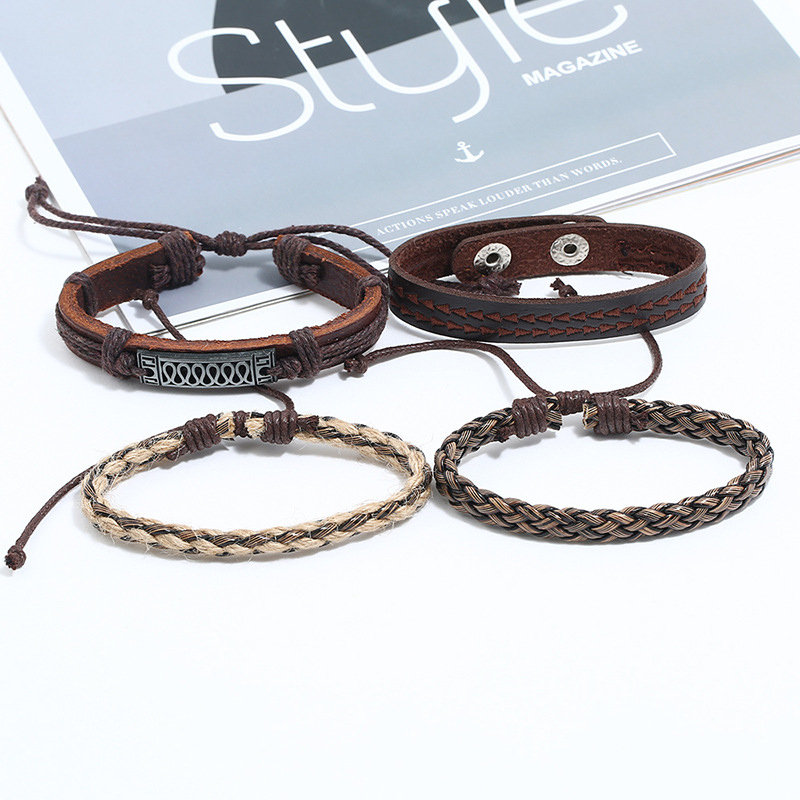 Bracciale in cuoio, Canapa, with Lega & PU & legno, placcato color oro, 4 pezzi & gioielli di moda, nessuno, 220x14mm, Lunghezza 18 cm, 4PC/set, Venduto da set