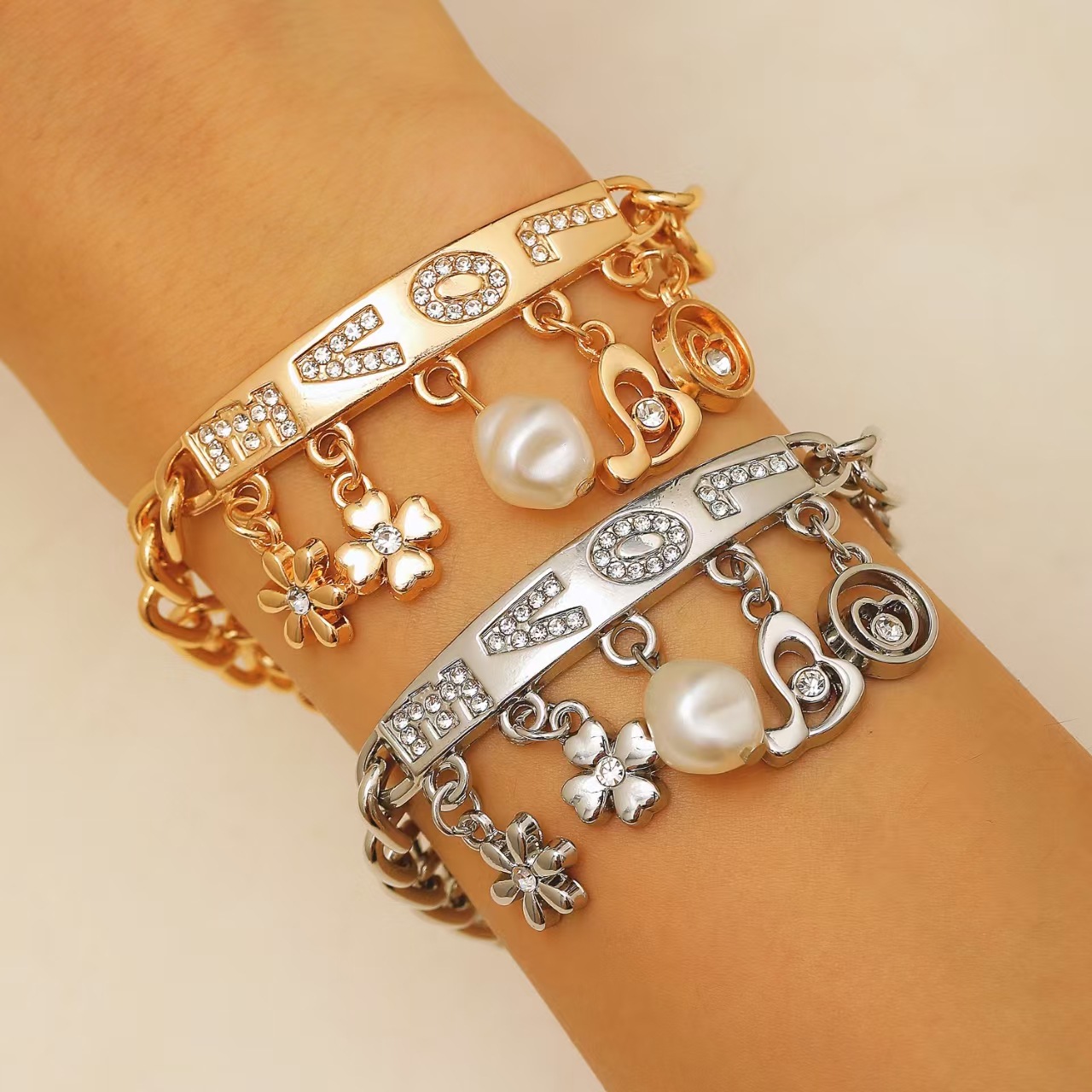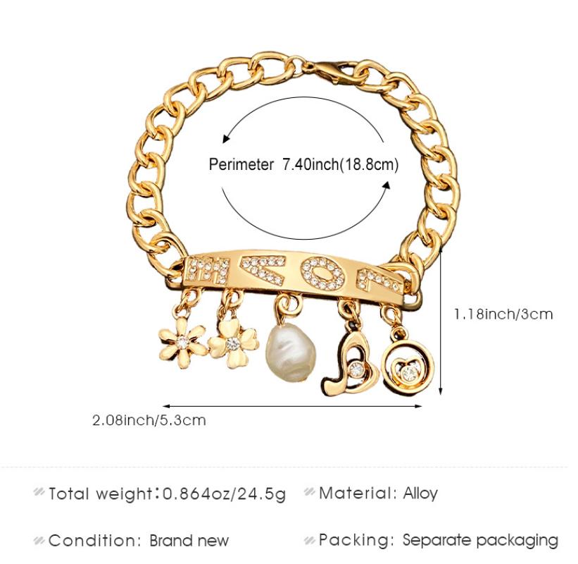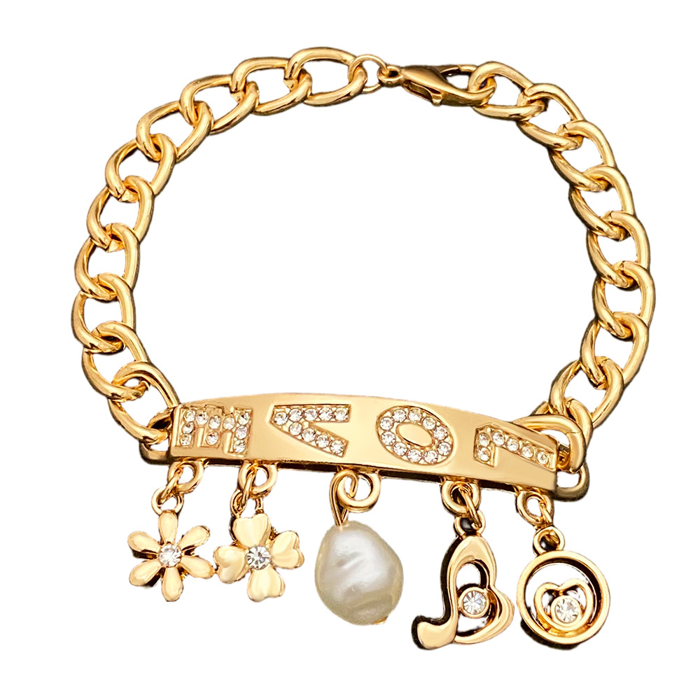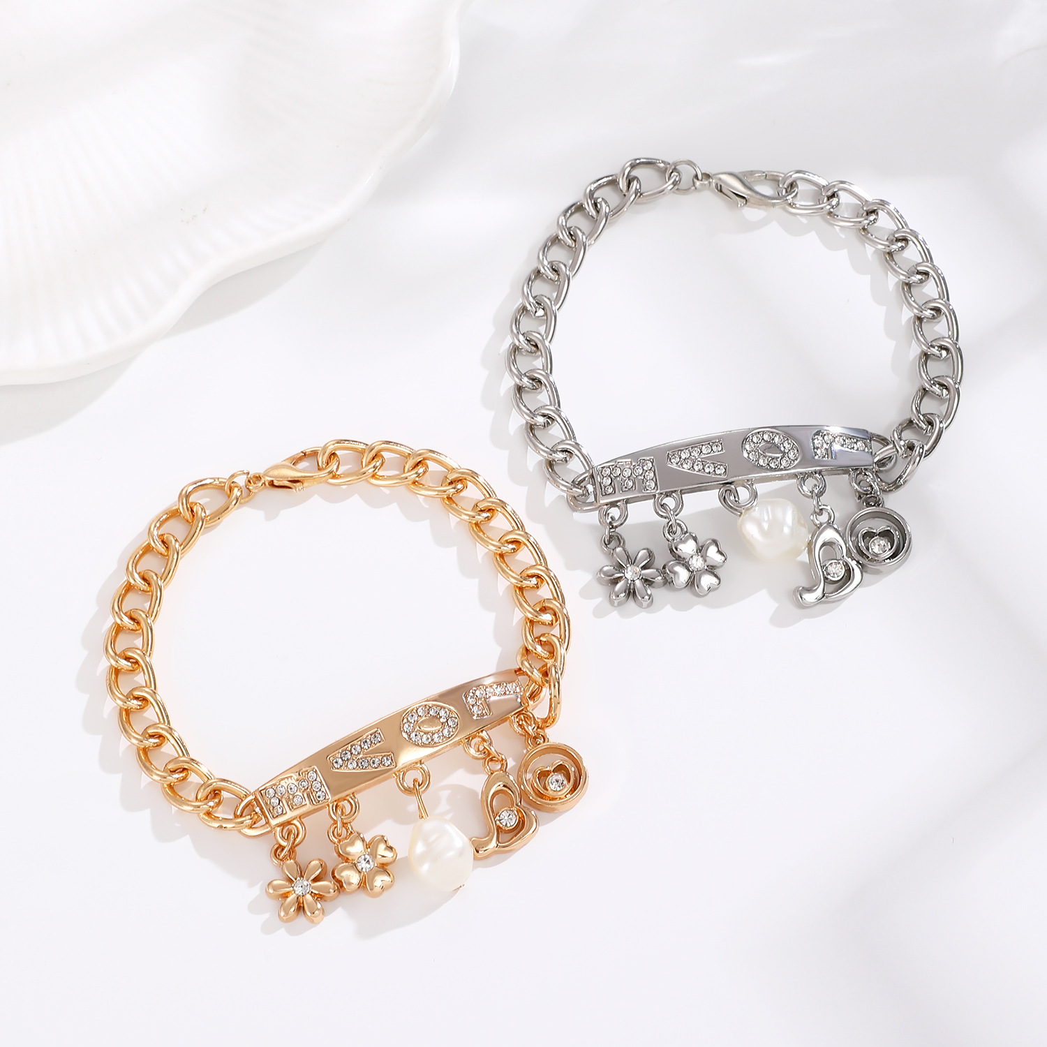 lega in zinco braccialetto, Lettera alfabeto, placcato color oro, stili diversi per la scelta & per la donna & con strass, Lunghezza Appross. 6-8 pollice, Venduto da PC