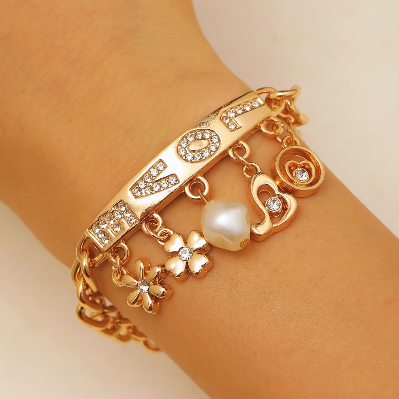 Bracciale in lega di zinco, lega in zinco, with perla in plastica, placcato color oro, gioielli di moda & con strass, nessuno, Venduto da PC