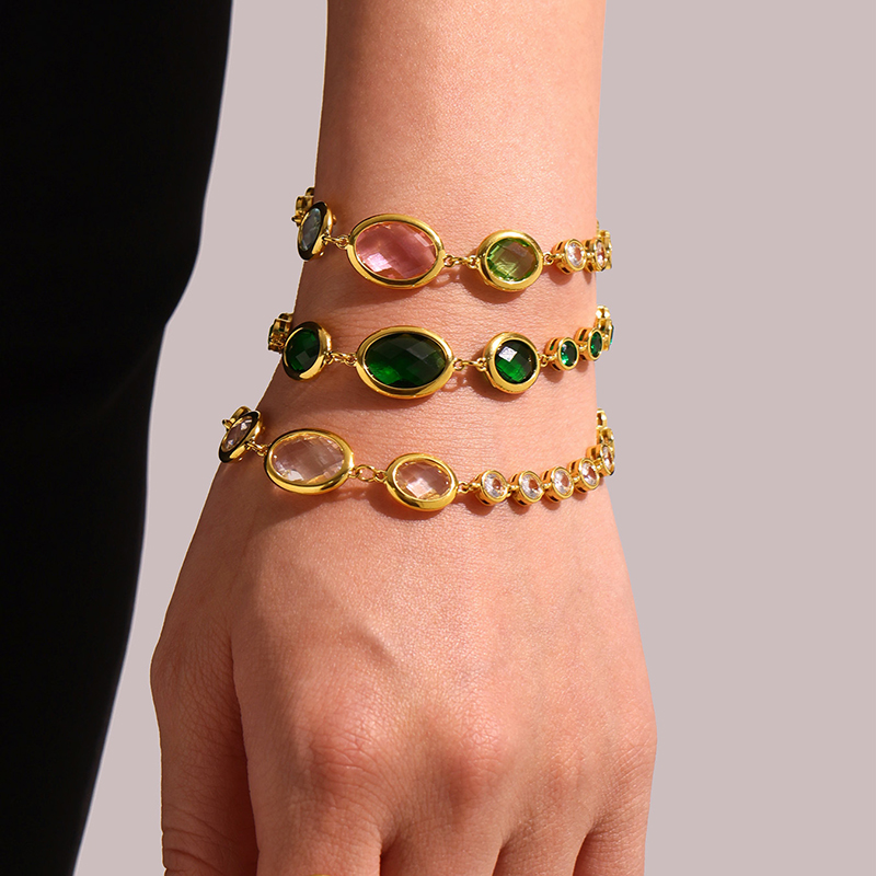 Bracciale in vetro, 304 acciaio inox, with vetro, Placcato oro 18K, gioielli di moda & per la donna, nessuno, Venduto da PC