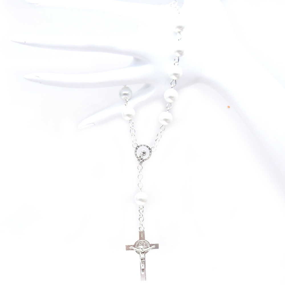 Bracciale in vetro, lega in zinco, with perla in vetro, Croce, placcato, gioielli di moda, bianco, 8mm, Lunghezza 16.5 cm, Venduto da PC