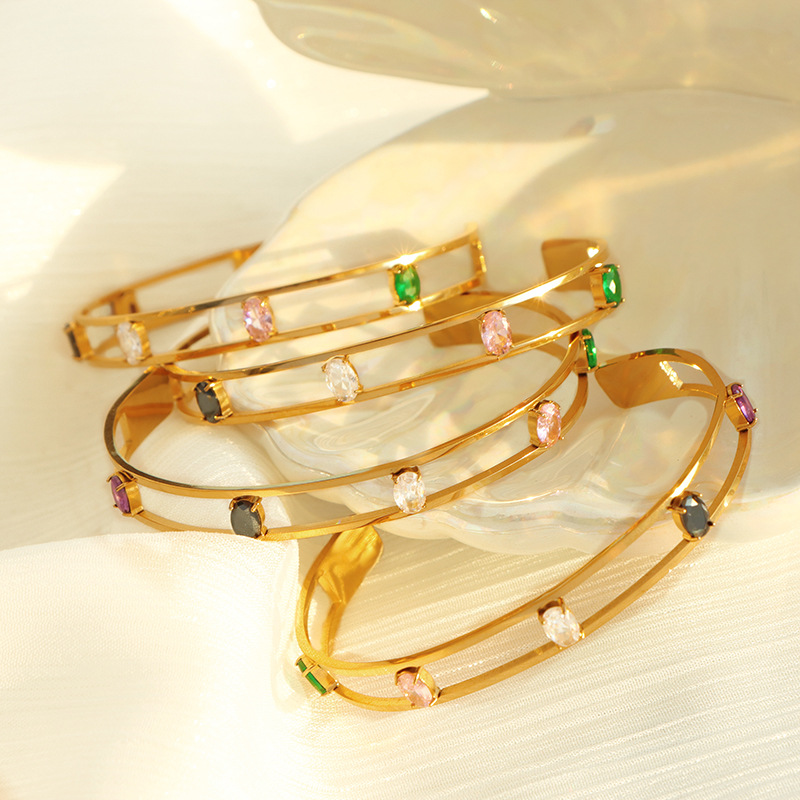 1:SZ14 steel adjustable open bracelet2:SZ14 Gold adjustable open bracelet