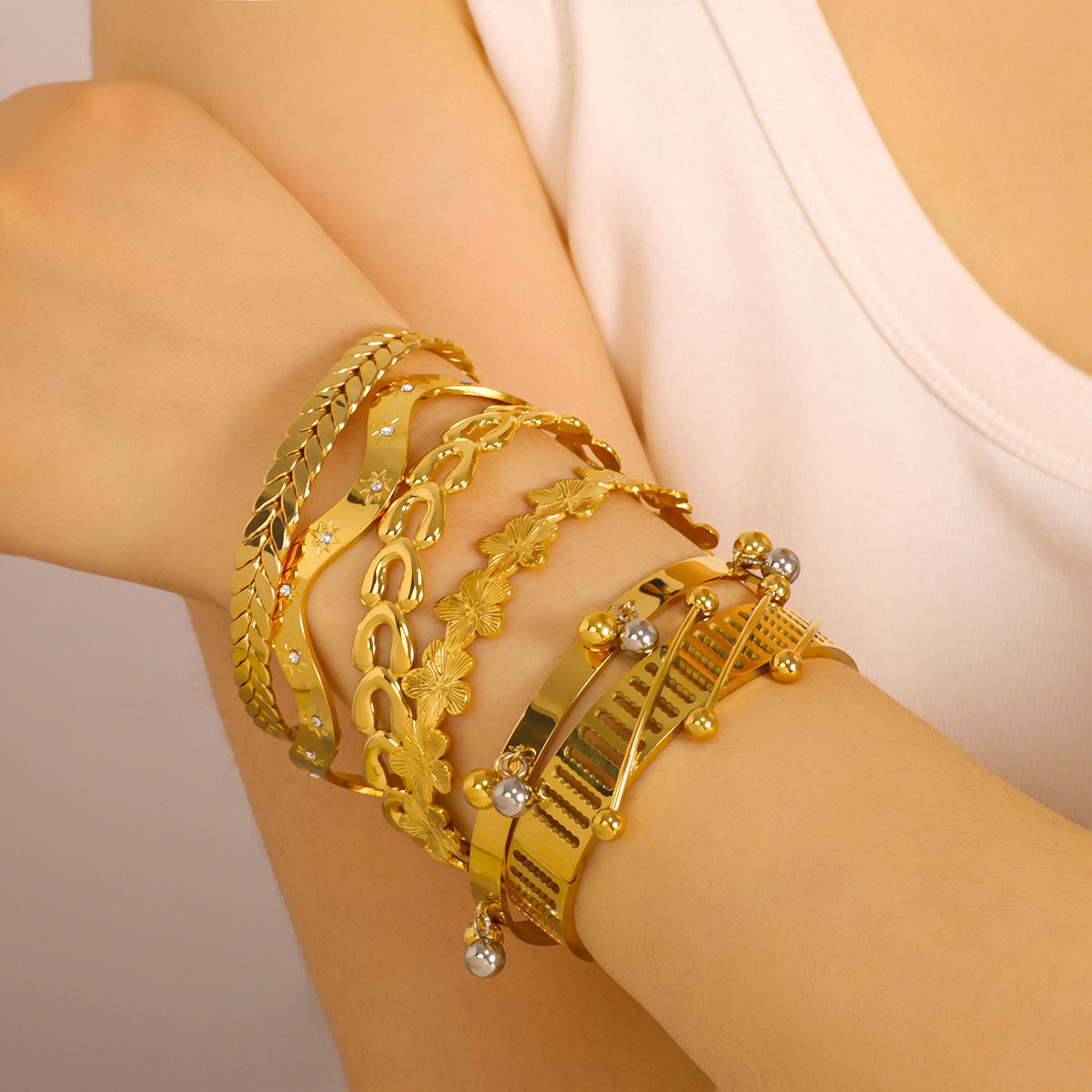 Braccialetto dell'acciaio inossidabile, 304 acciaio inox, with Perle di plastica ABS, placcato color oro, gioielli di moda & diversi modelli per la scelta, dorato, Venduto da PC