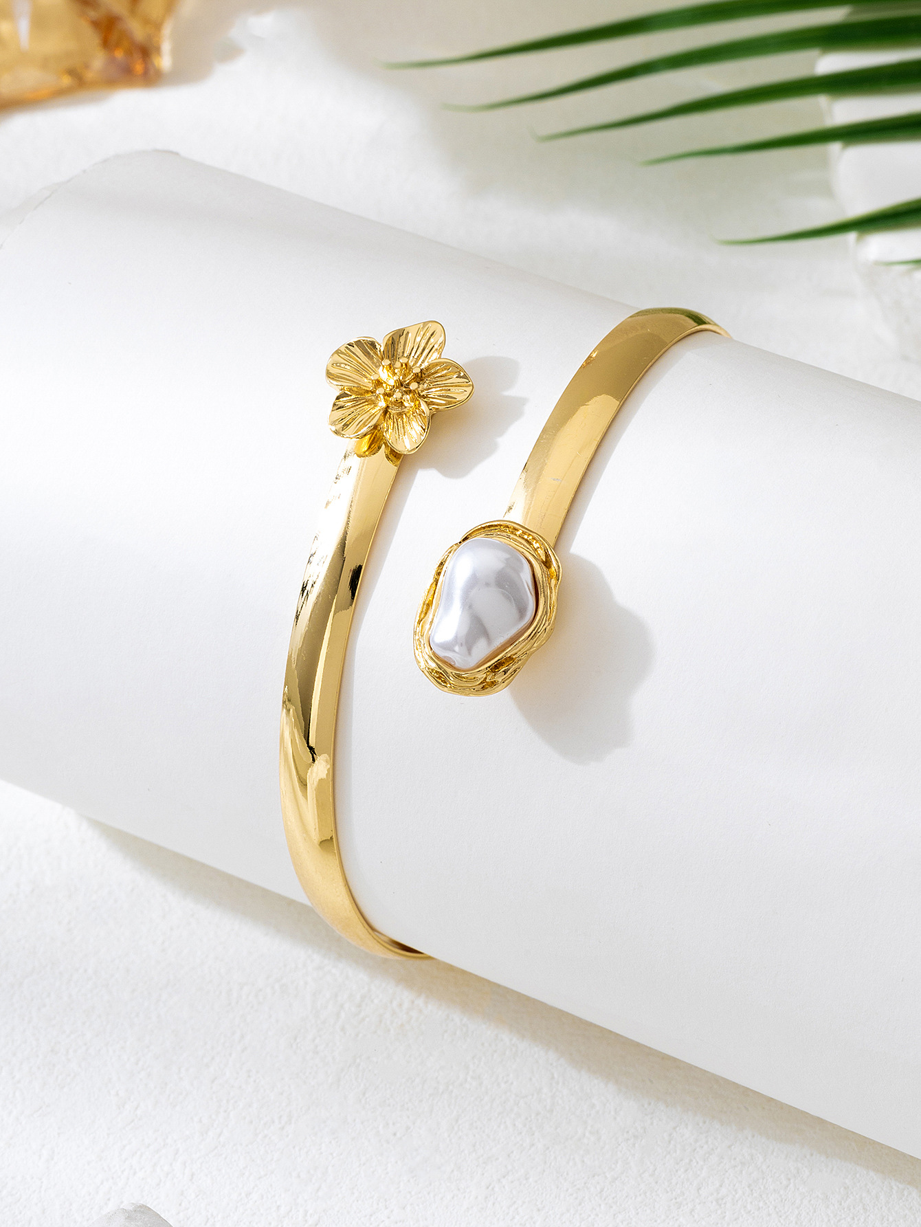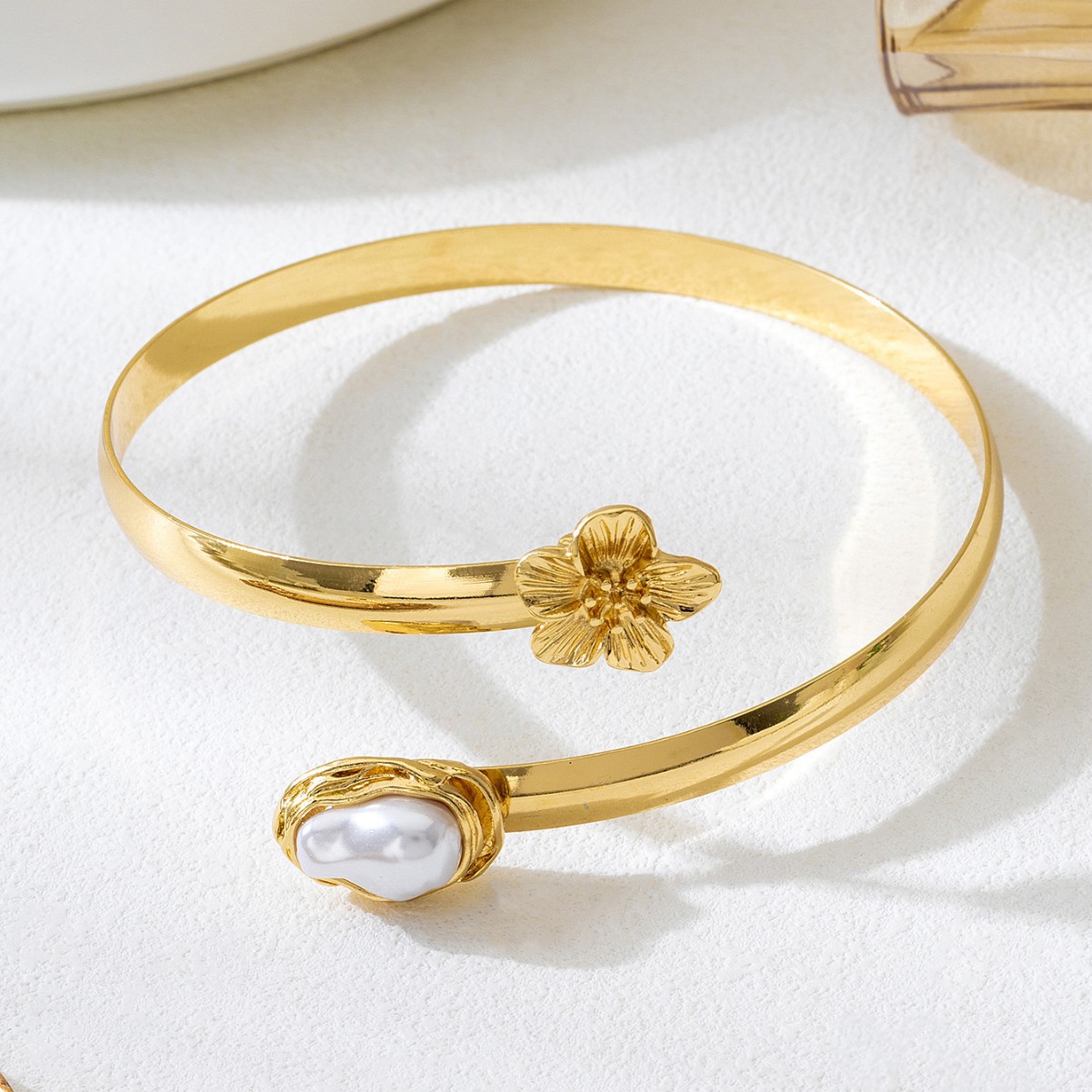 Braccialetto dell'acciaio inossidabile, 304 acciaio inox, with perla in plastica & ottone, placcato color oro, Regolabile & gioielli di moda, nessuno, Venduto da PC