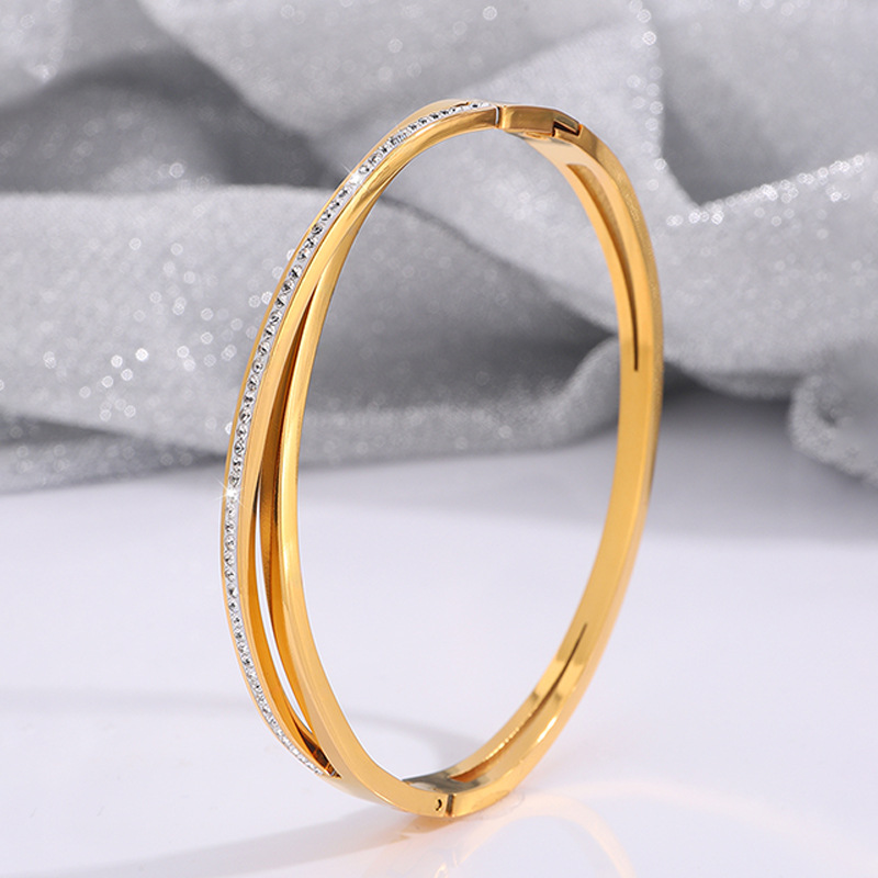 Braccialetto dell'acciaio inossidabile, 304 acciaio inox, placcato, tre strati & per la donna & con strass, nessuno, Venduto da PC