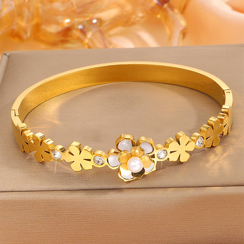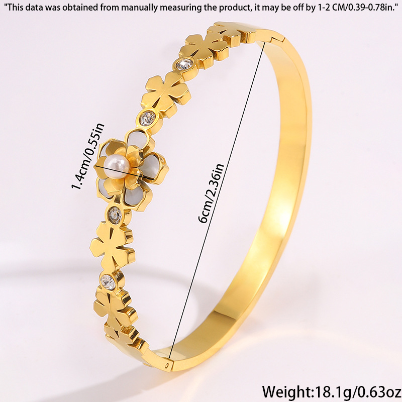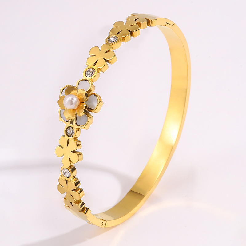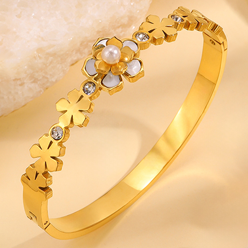 Braccialetto dell'acciaio inossidabile, 304 acciaio inox, with bianco conchiglia & perla in plastica, gioielli di moda & per la donna & con strass, dorato, Venduto da PC