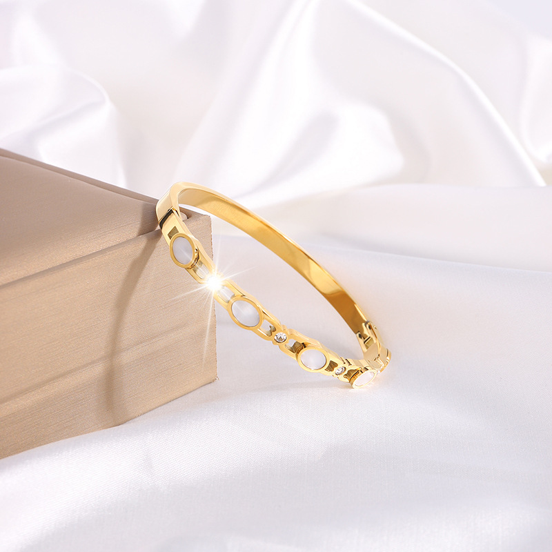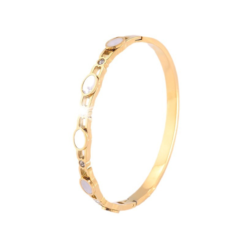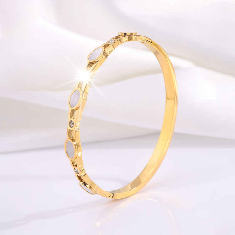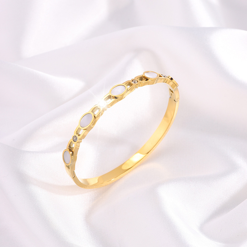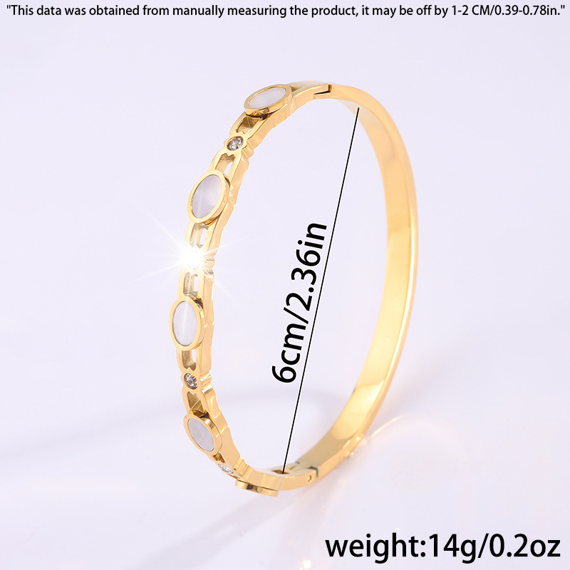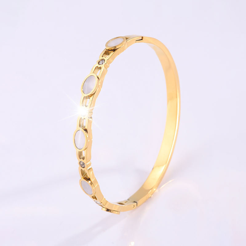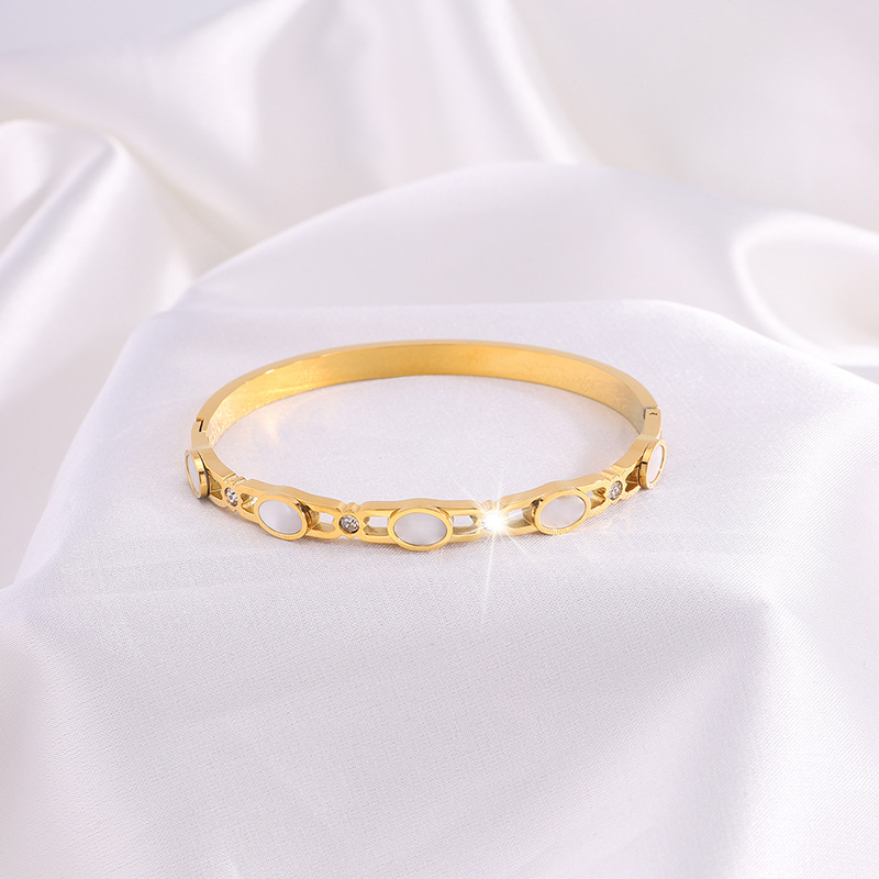 Braccialetto dell'acciaio inossidabile, 304 acciaio inox, with bianco conchiglia, placcato, per la donna & con strass & cavo, dorato, Venduto da PC