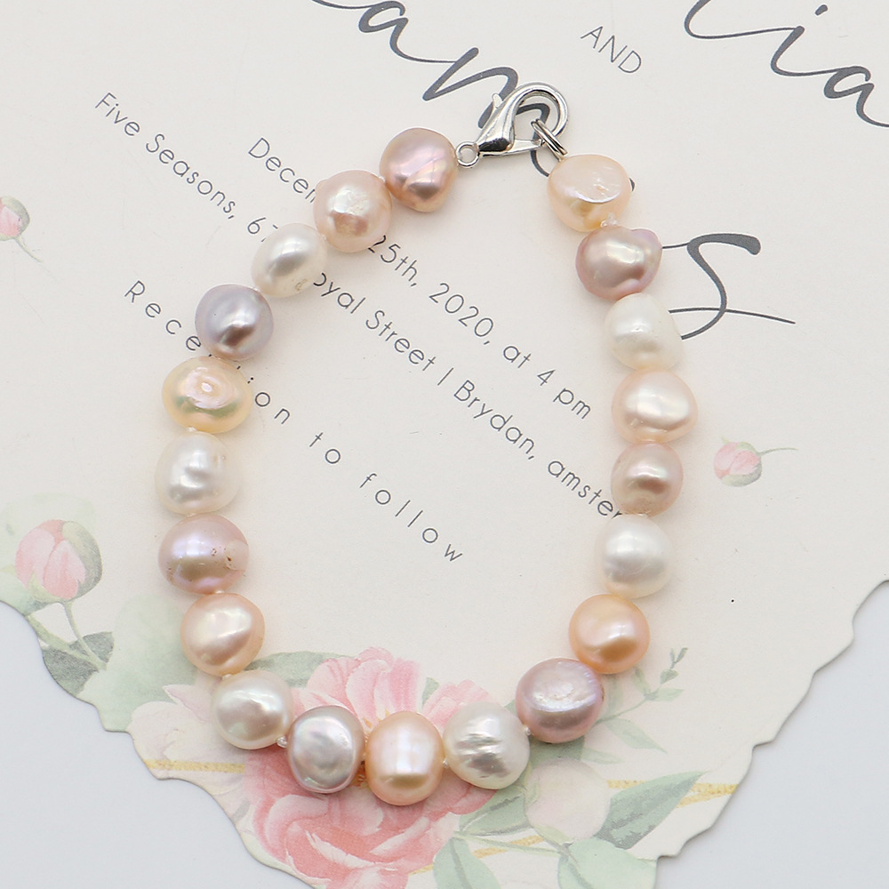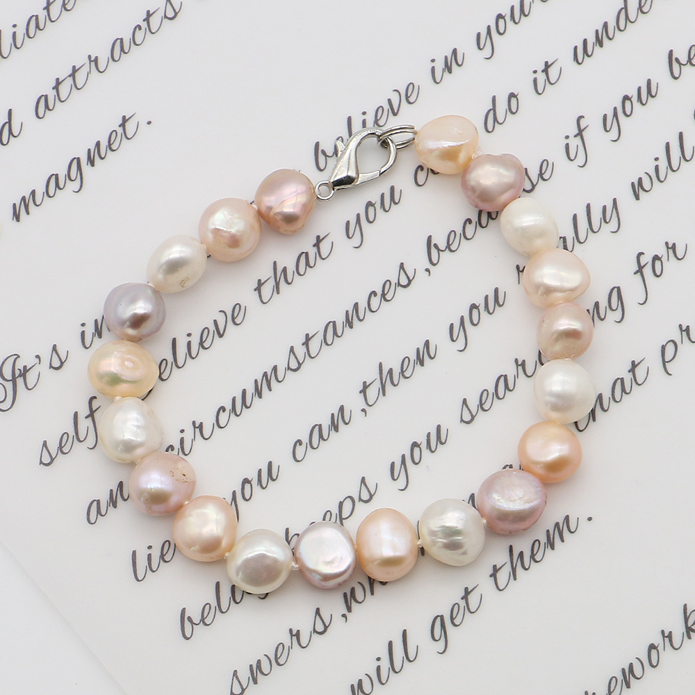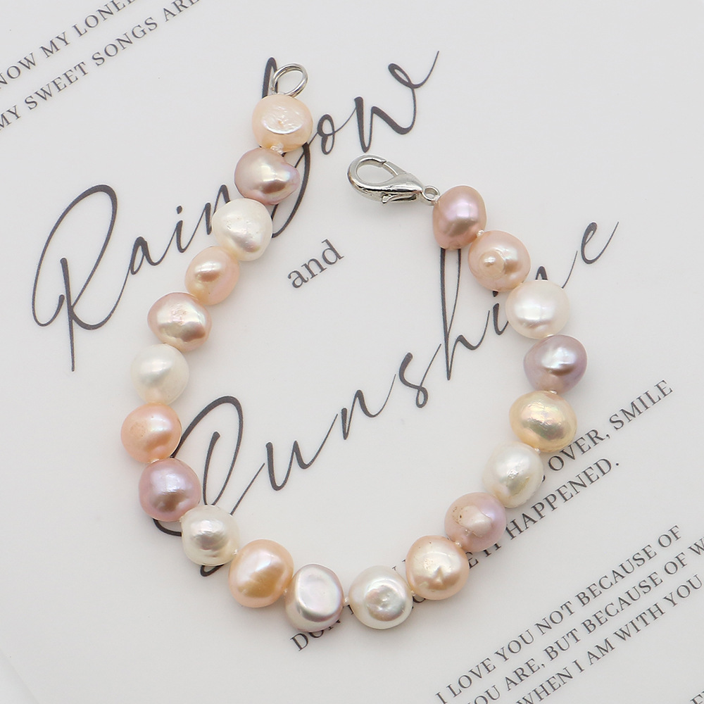 Braccialetto perla coltivata d'acqua dolce, perla d'acquadolce coltivata naturalmente, with 304 acciaio inox, Irregolare, gioielli di moda, colori misti, 8-9mm, Lunghezza 18 cm, Venduto da PC