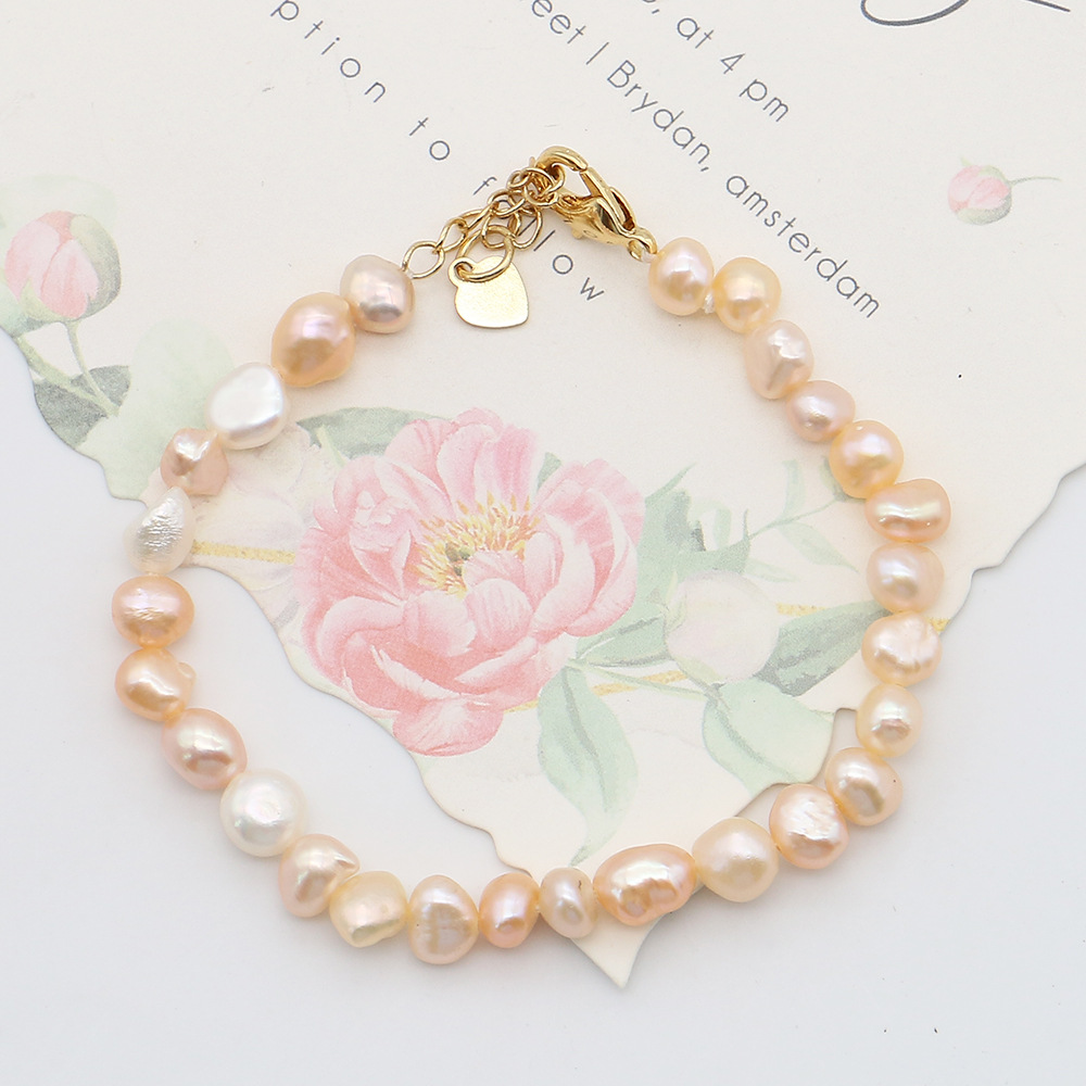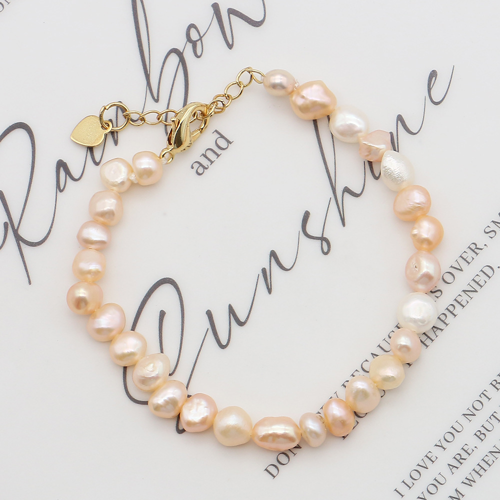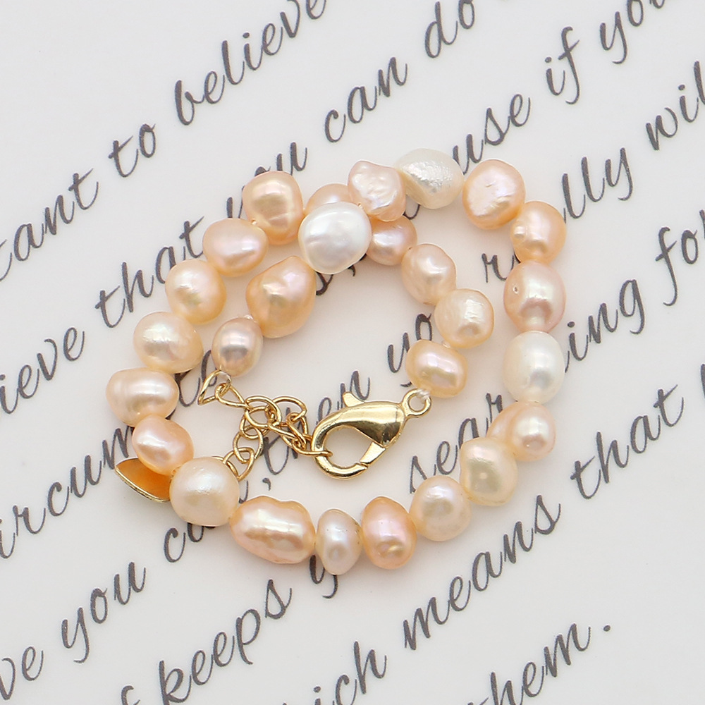 Braccialetto perla coltivata d'acqua dolce, perla d'acquadolce coltivata naturalmente, with ottone, Barocco, placcato, gioielli di moda, nessuno, 6x7mm, Venduto da filo