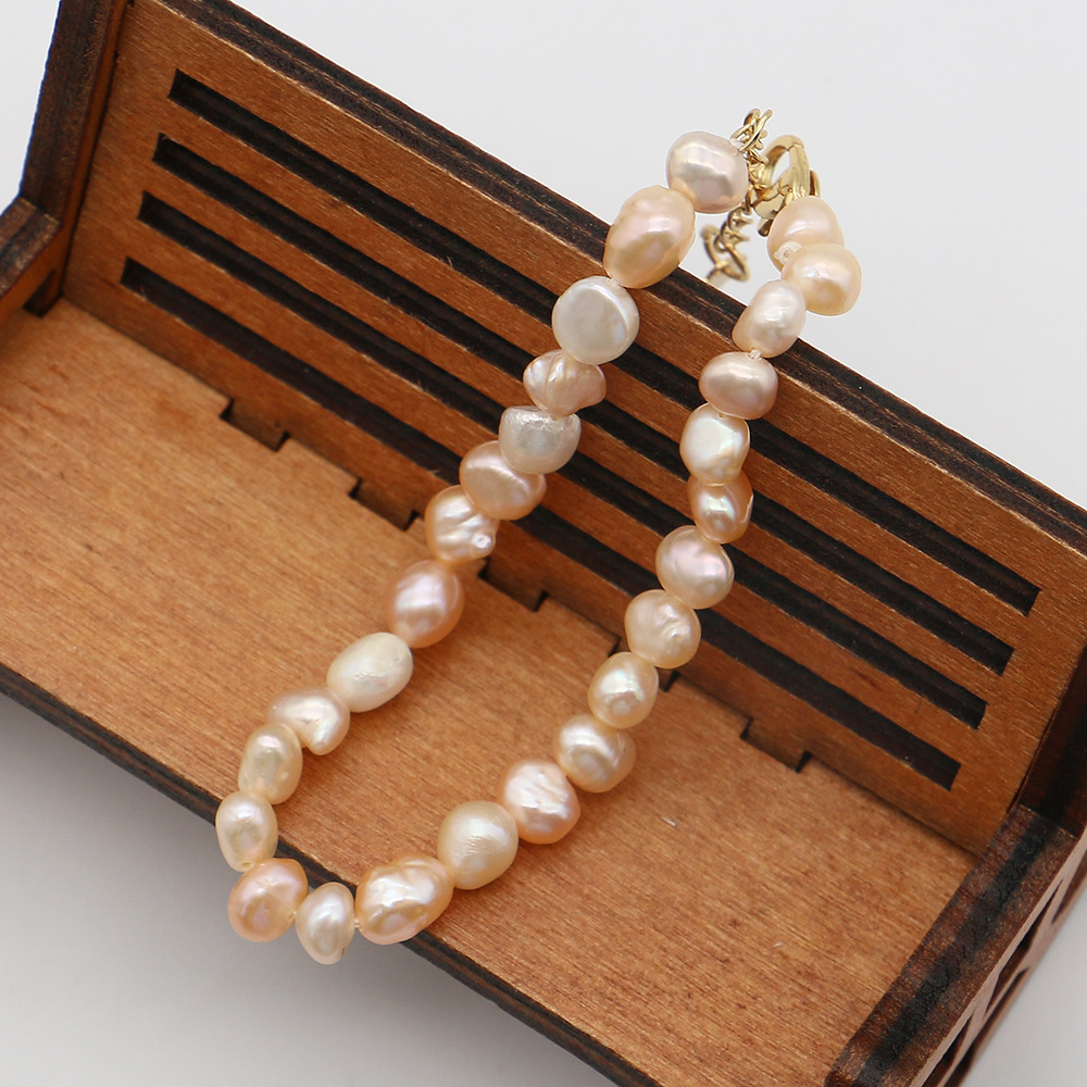 Braccialetto perla coltivata d'acqua dolce, perla d'acquadolce coltivata naturalmente, with 304 acciaio inox, Irregolare, gioielli di moda, colori misti, 6-7mm, Lunghezza 15 cm, Venduto da PC