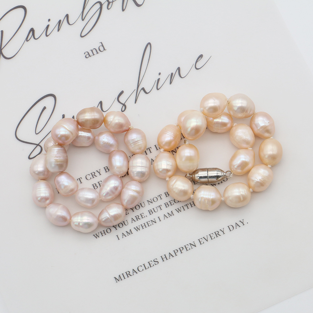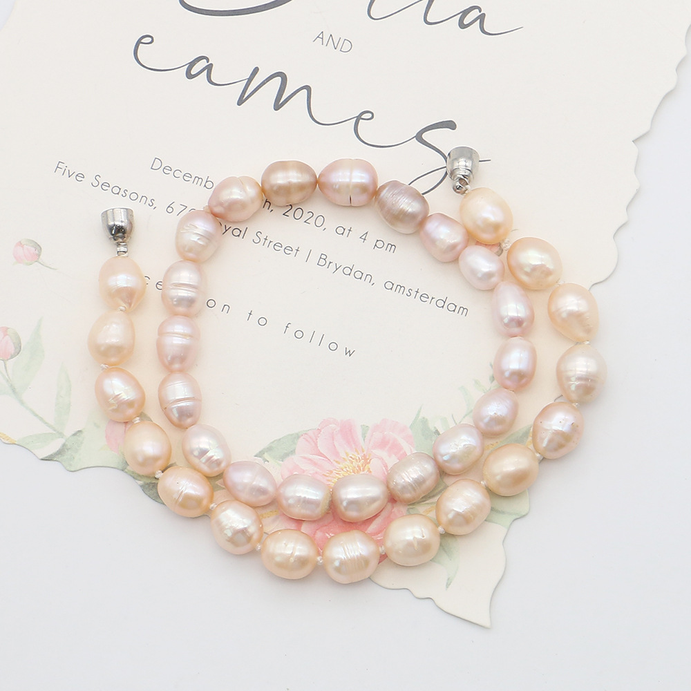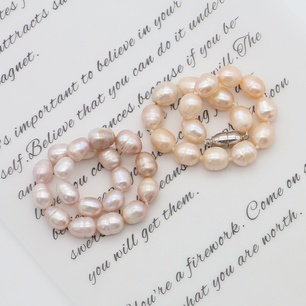 Braccialetto perla coltivata d'acqua dolce, perla d'acquadolce coltivata naturalmente, with 304 acciaio inox, Riso, gioielli di moda, colori misti, 8-9mm, Lunghezza 18 cm, Venduto da PC