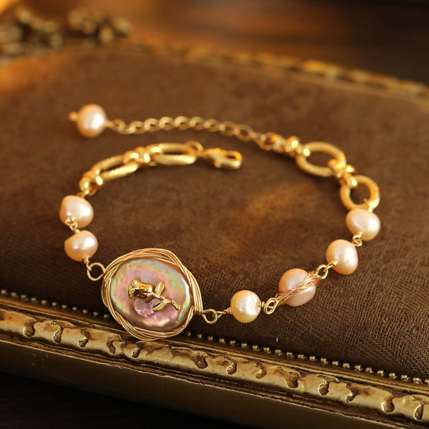 Braccialetto perla coltivata d'acqua dolce, perla d'acquadolce coltivata naturalmente, with Lega di rame, Irregolare, placcato color oro, gioielli di moda, nessuno, 5-6MM, Venduto per 18 cm filo