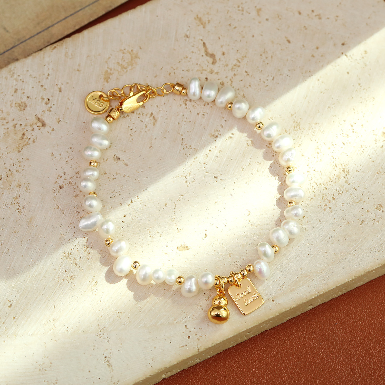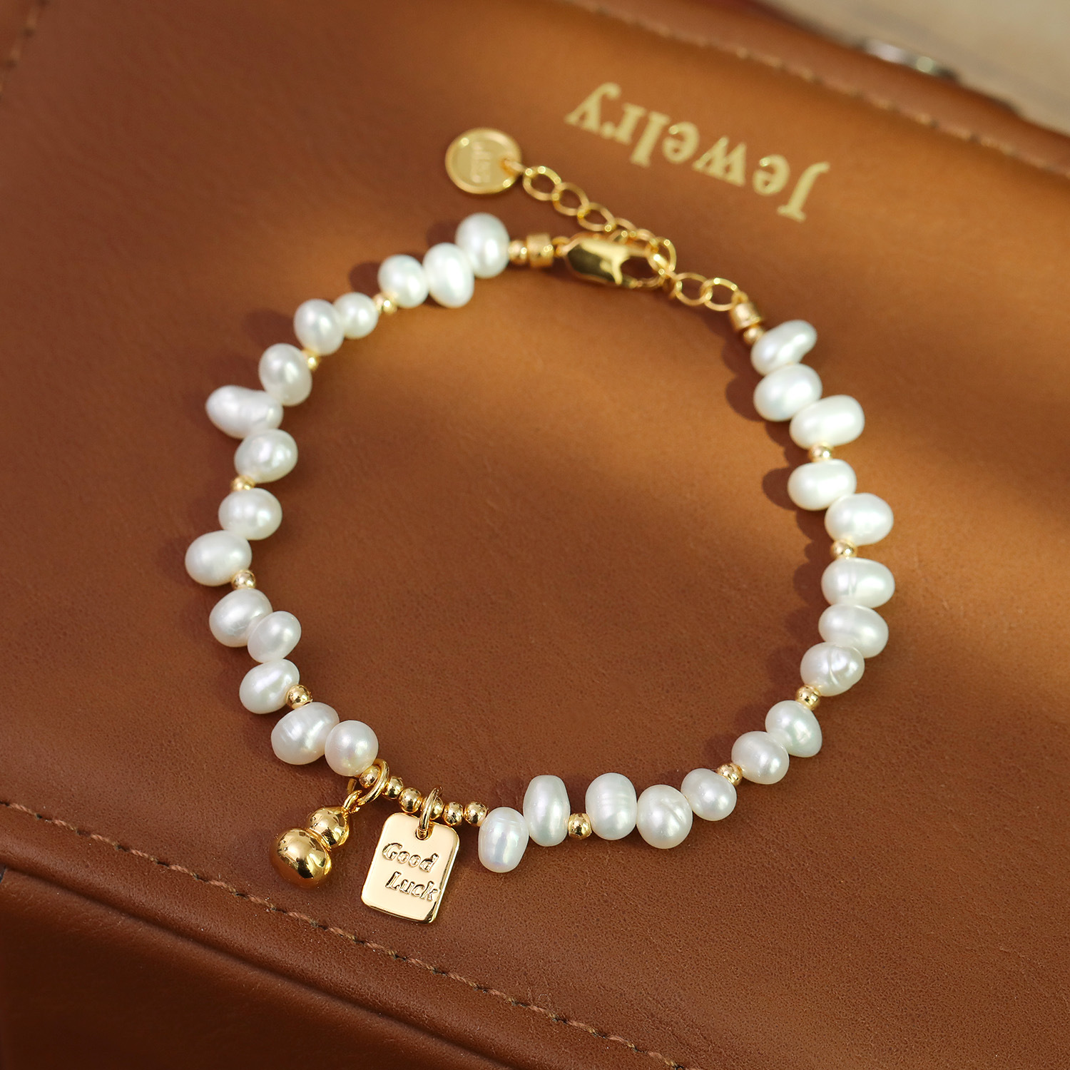 Braccialetto perla coltivata d'acqua dolce, perla d'acquadolce coltivata naturalmente, with ottone, Barocco, placcato, gioielli di moda, nessuno, 6x7mm, Venduto da filo