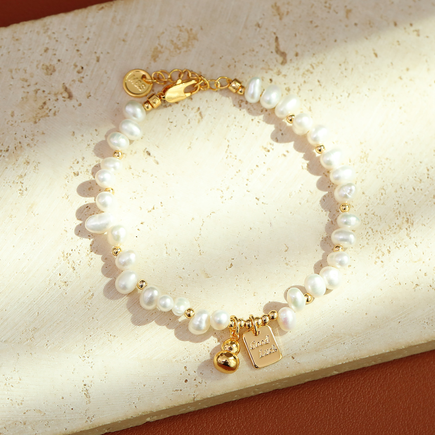 Braccialetto perla coltivata d'acqua dolce, perla d'acquadolce coltivata naturalmente, with Lega di rame, Irregolare, placcato color oro, gioielli di moda, nessuno, 5-6MM, Venduto per 18 cm filo
