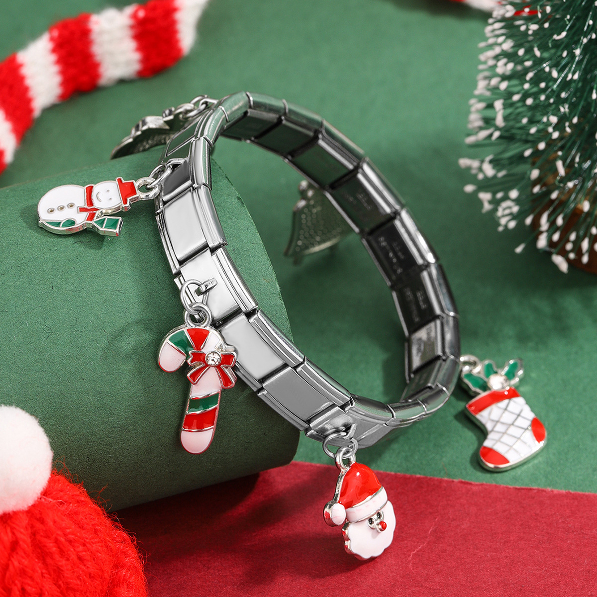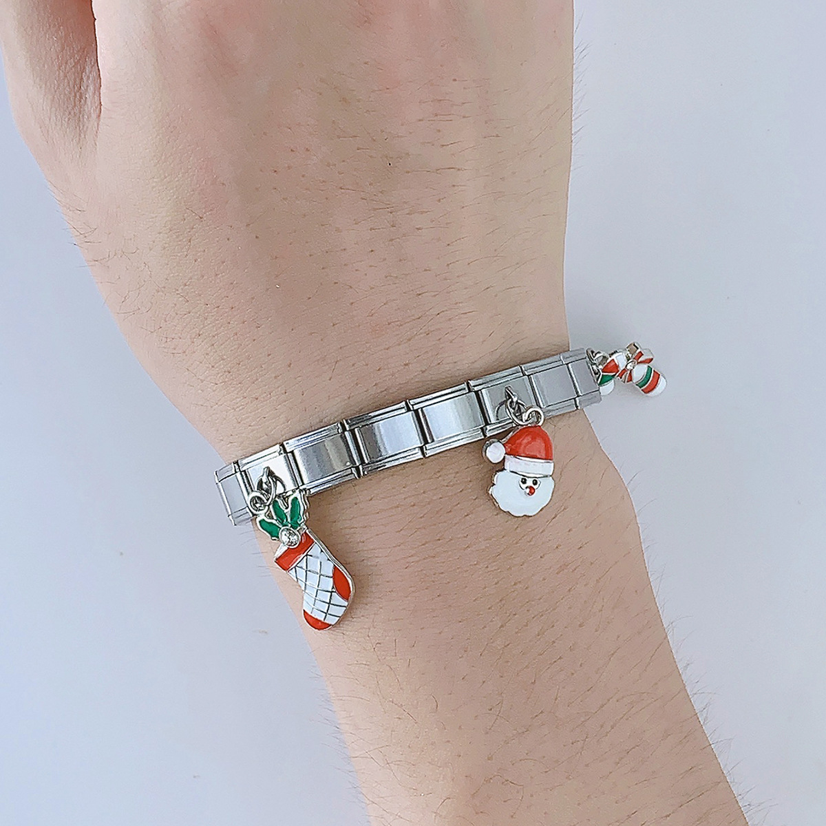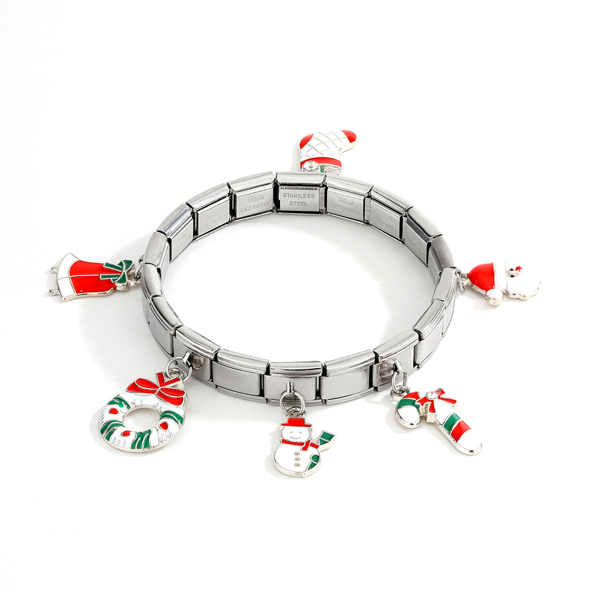 Bracciali festivilità Natale, 304 acciaio inox, placcato color oro, Design natalizio & smalto, nessuno, Venduto da PC