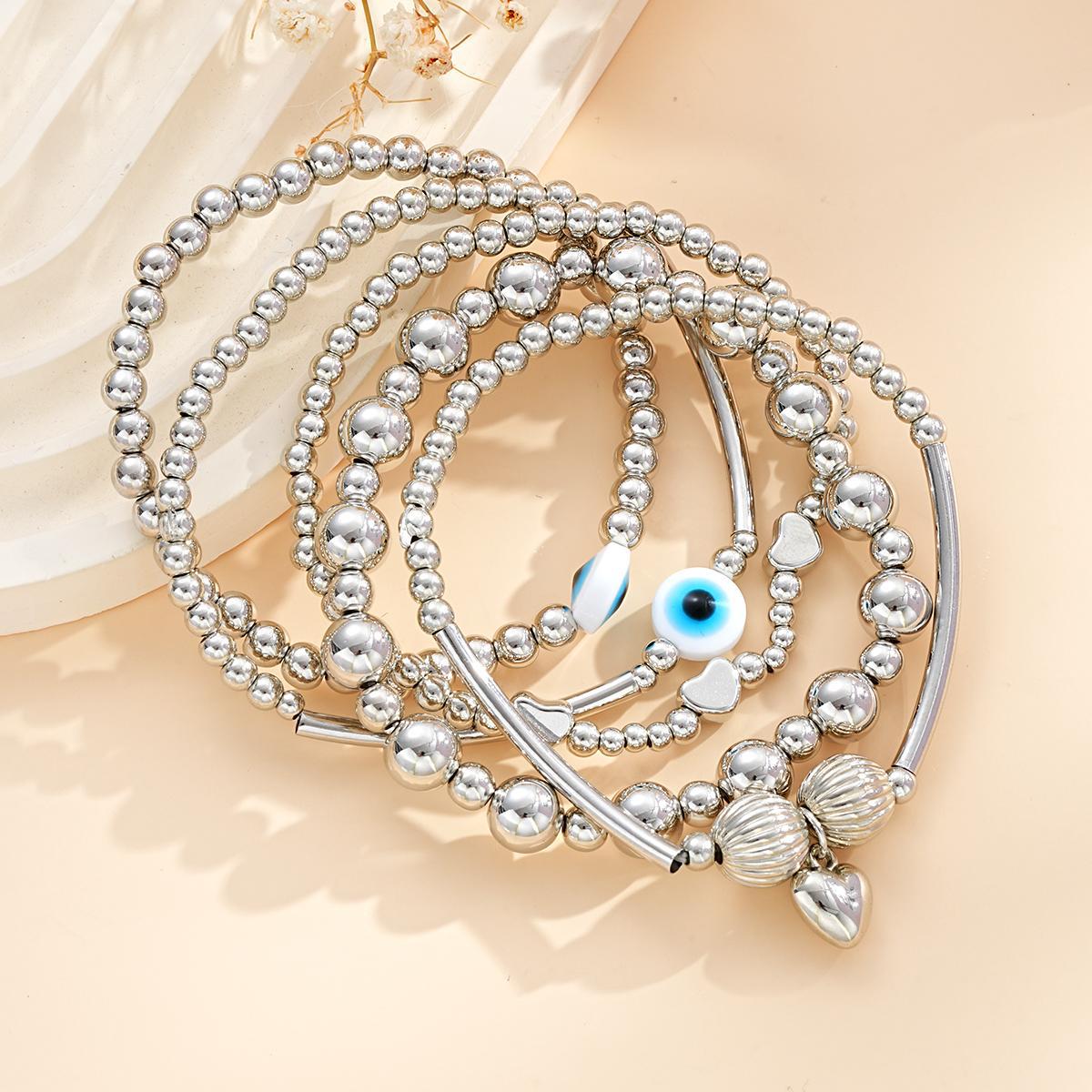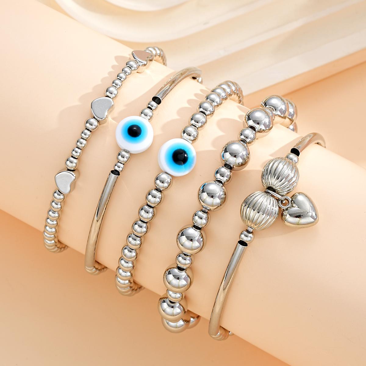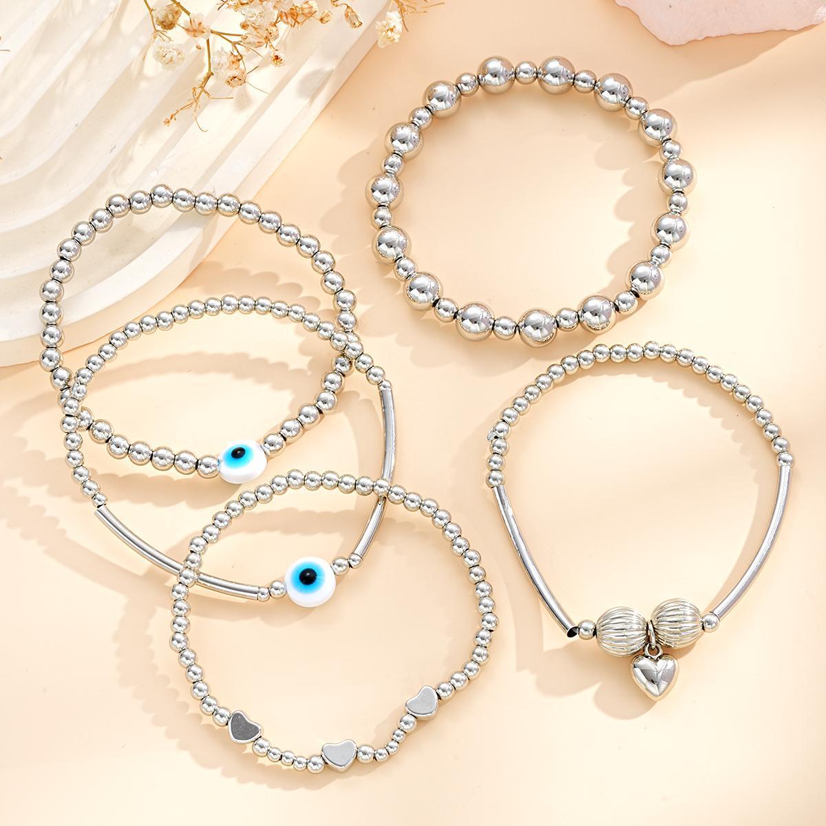 Bracciale in lega di zinco, lega in zinco, with filo elastico & plastica rivestito in rame & perla in plastica, placcato, 5 pezzi & gioielli di moda & unisex, colore originale, Venduto da set