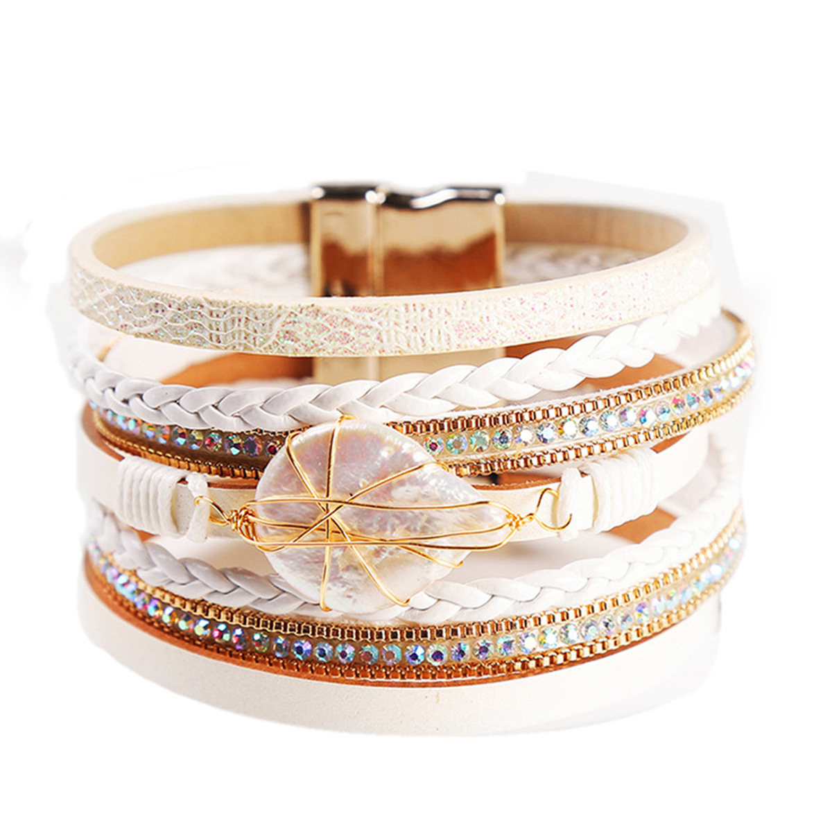PU cavo bracciali, with Shell Pearl, placcato, multistrato & stili diversi per la scelta & per la donna, nessuno, wide:5cm, Lunghezza 23 cm, Venduto da PC
