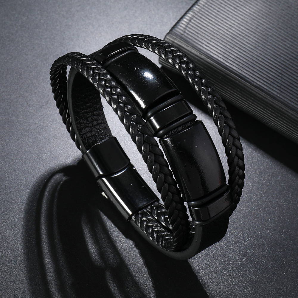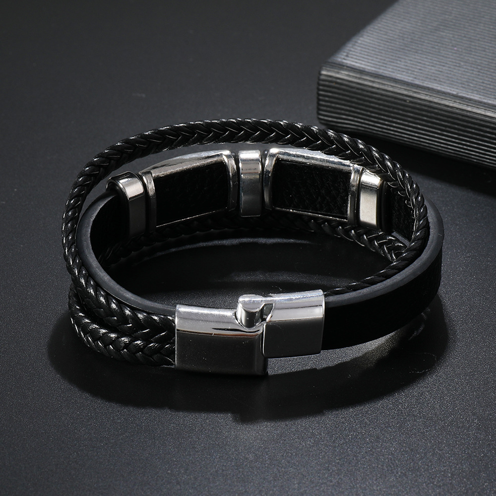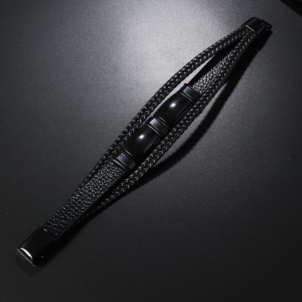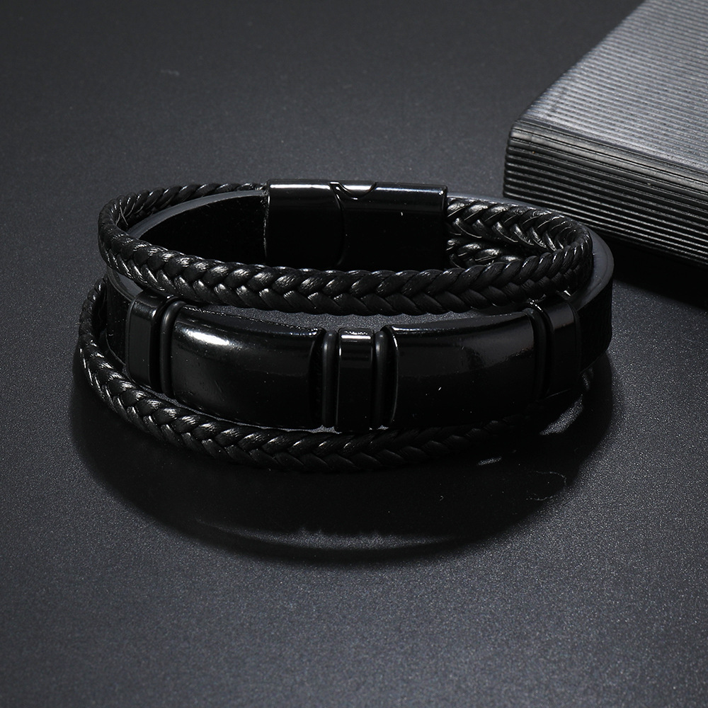 PU cavo bracciali, 304 acciaio inox, with PU, tre strati & lunghezza differente per scelta & per l'uomo, nero, Venduto da PC