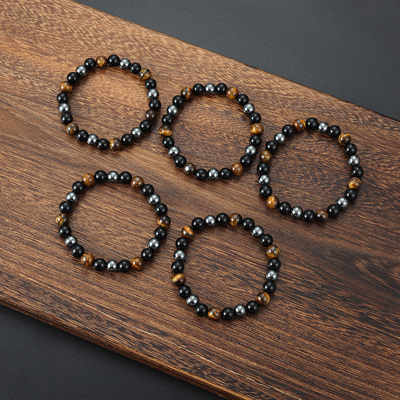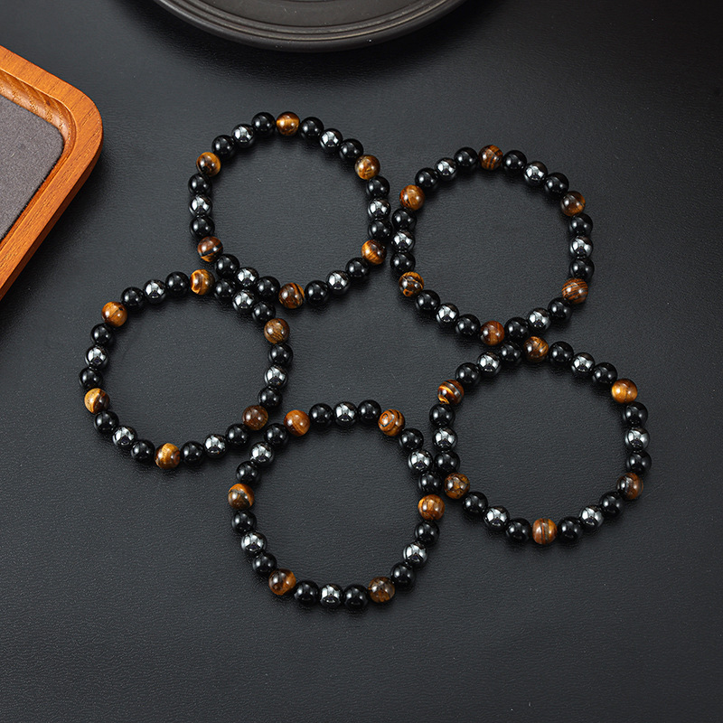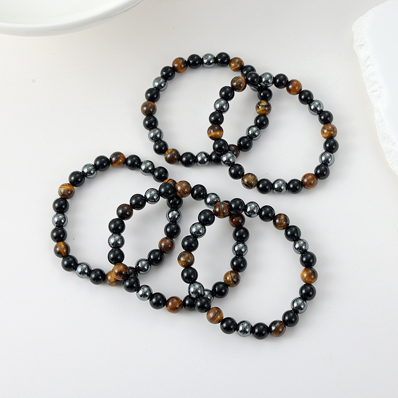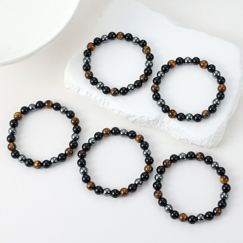 Gemstone Bracciali, Obsidian, with occhio di tigre & Ematite, gioielli di moda & elastico & unisex, colori misti, 8mm, Lunghezza Appross. 19 cm, Venduto da PC