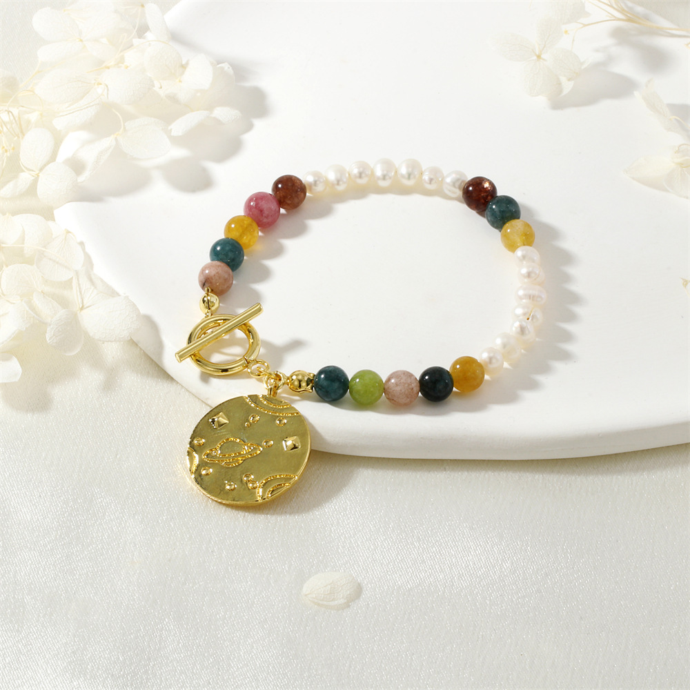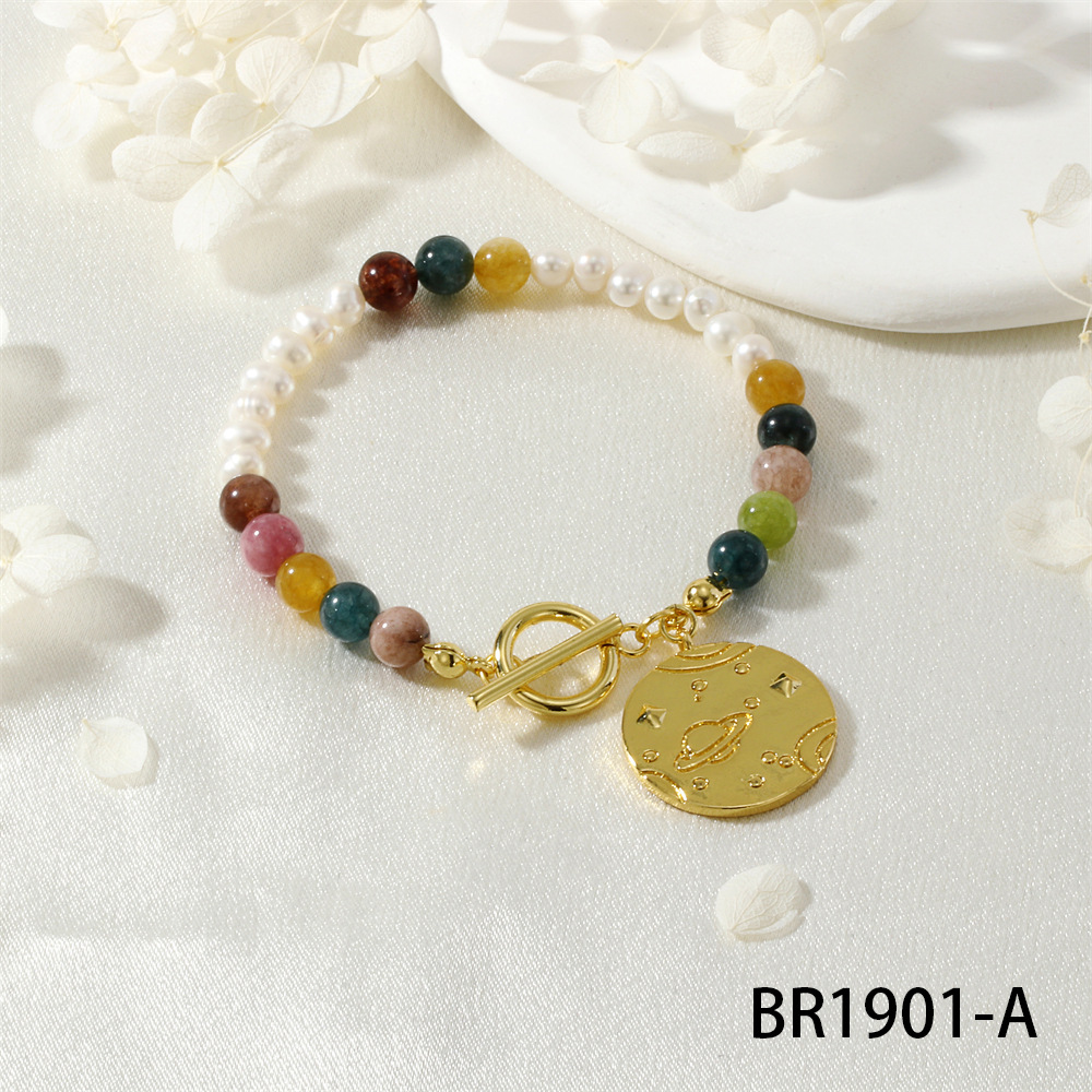 Gemstone Bracciali, ottone, with Chips Gemstone & perla d'acquadolce coltivata naturalmente, placcato color oro, per la donna, colori misti, assenza di nichel,piombo&cadmio, Venduto da PC