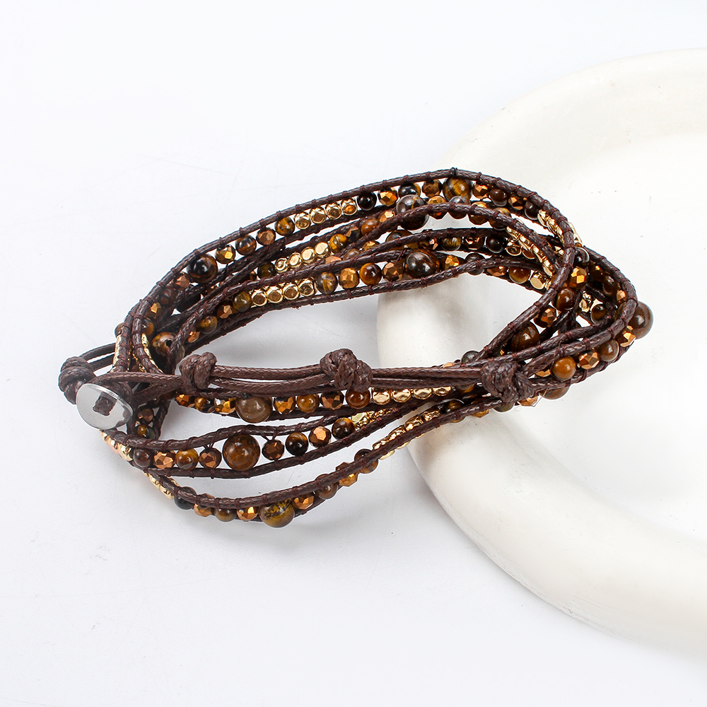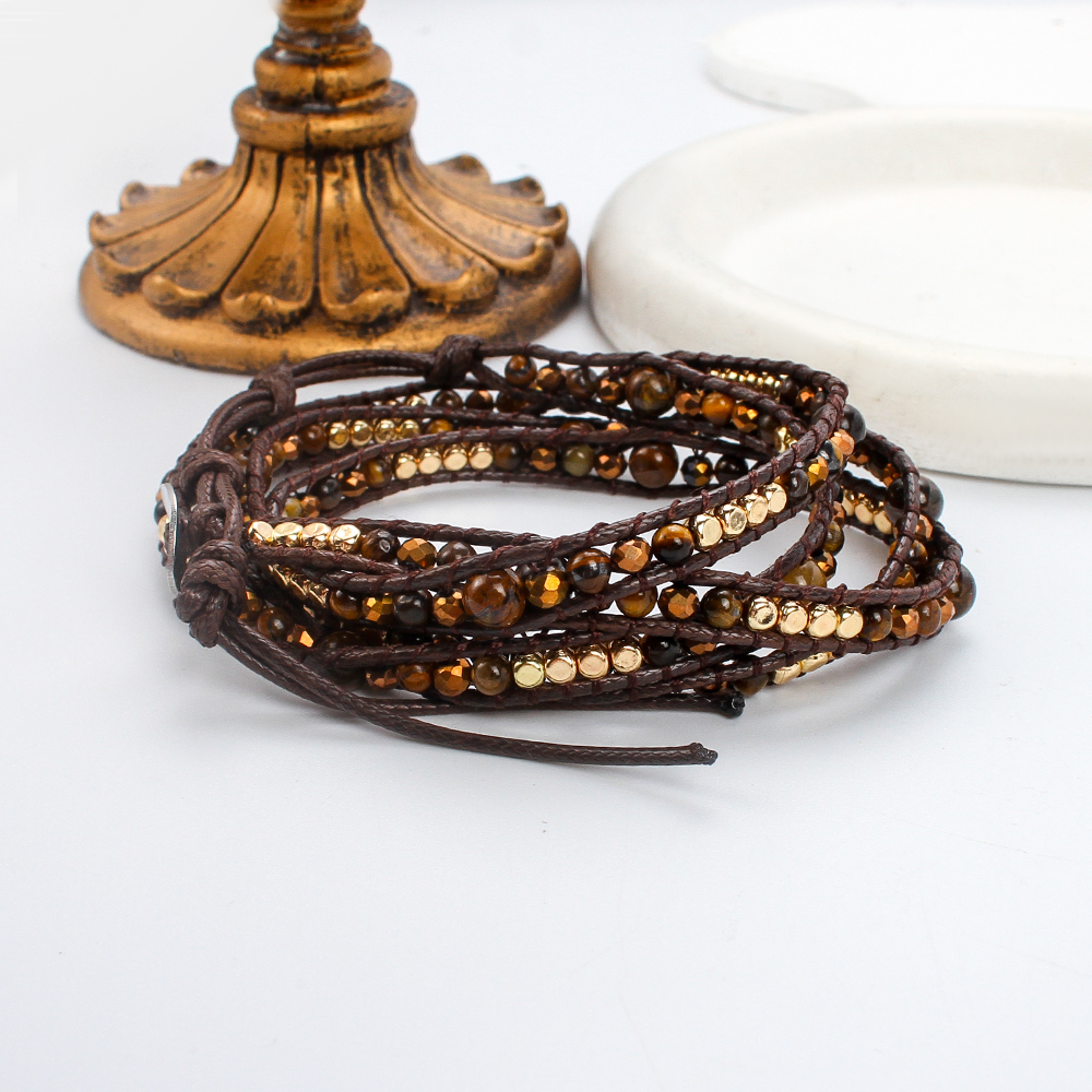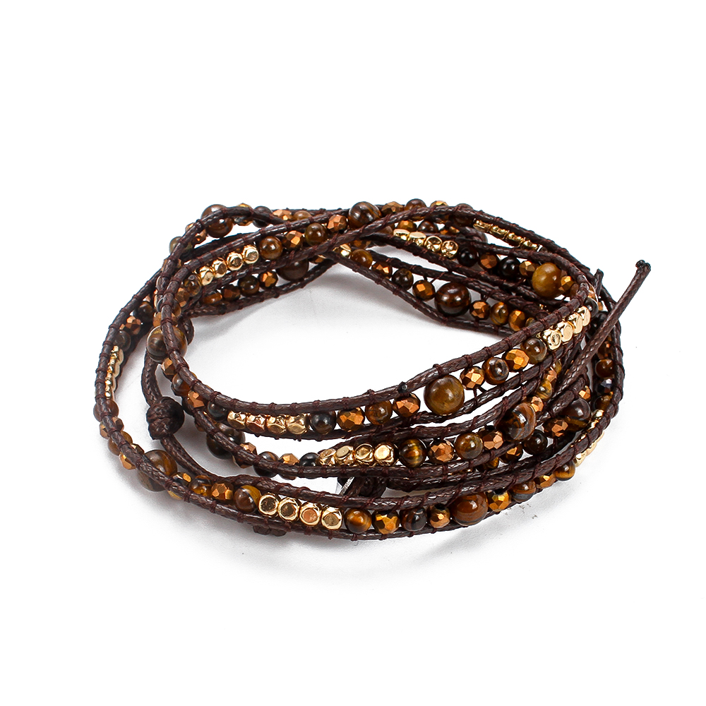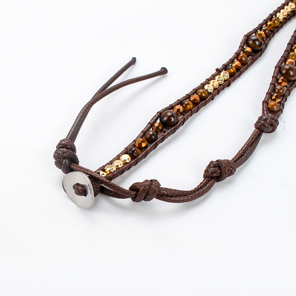 La tigre naturale Bracciali dell'occhio, occhio di tigre, with corda di cera & ottone & lega in zinco, Cerchio, placcato, gioielli di moda & multistrato & unisex, colori misti, Venduto per Appross. 85 cm filo