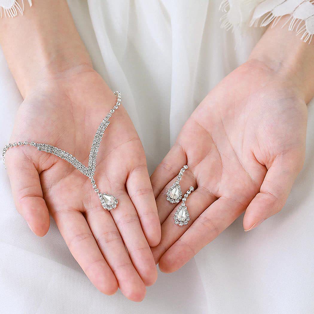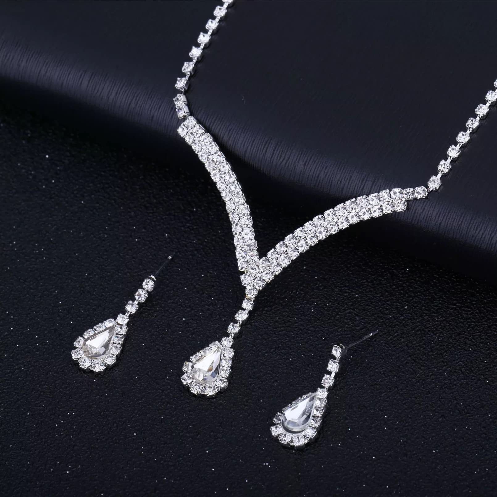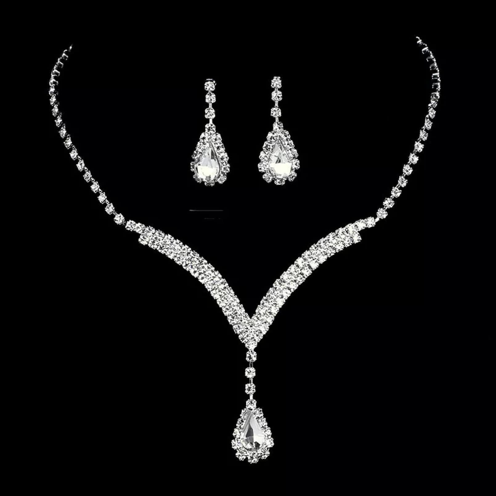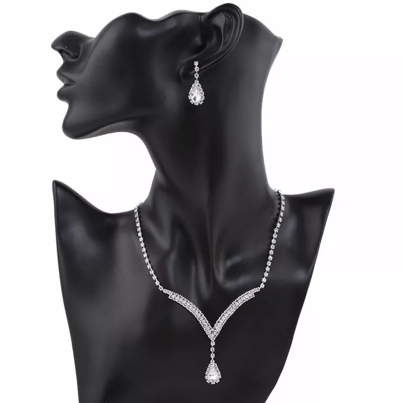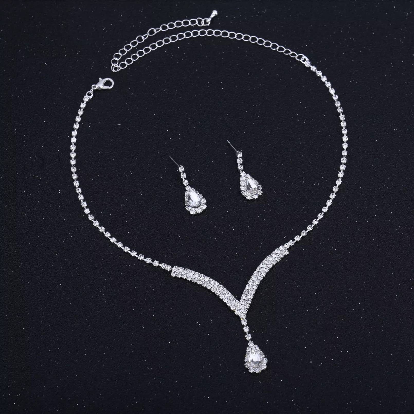 Gioielli Brass Set, Orecchino a bottone & Collana, ottone, with cristallo, placcato, 2 pezzi & per la donna & con strass, nessuno, Venduto da set
