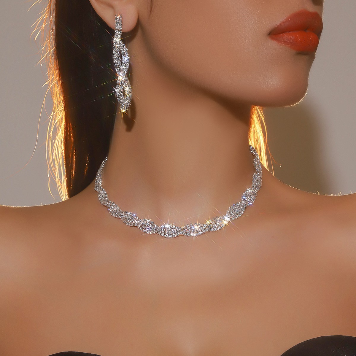 Gioielli Brass Set, orecchino & Collana, ottone, gioielli di moda & per la donna & con strass, Venduto da set