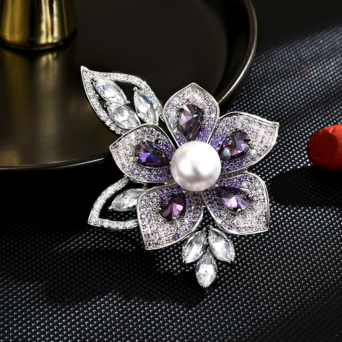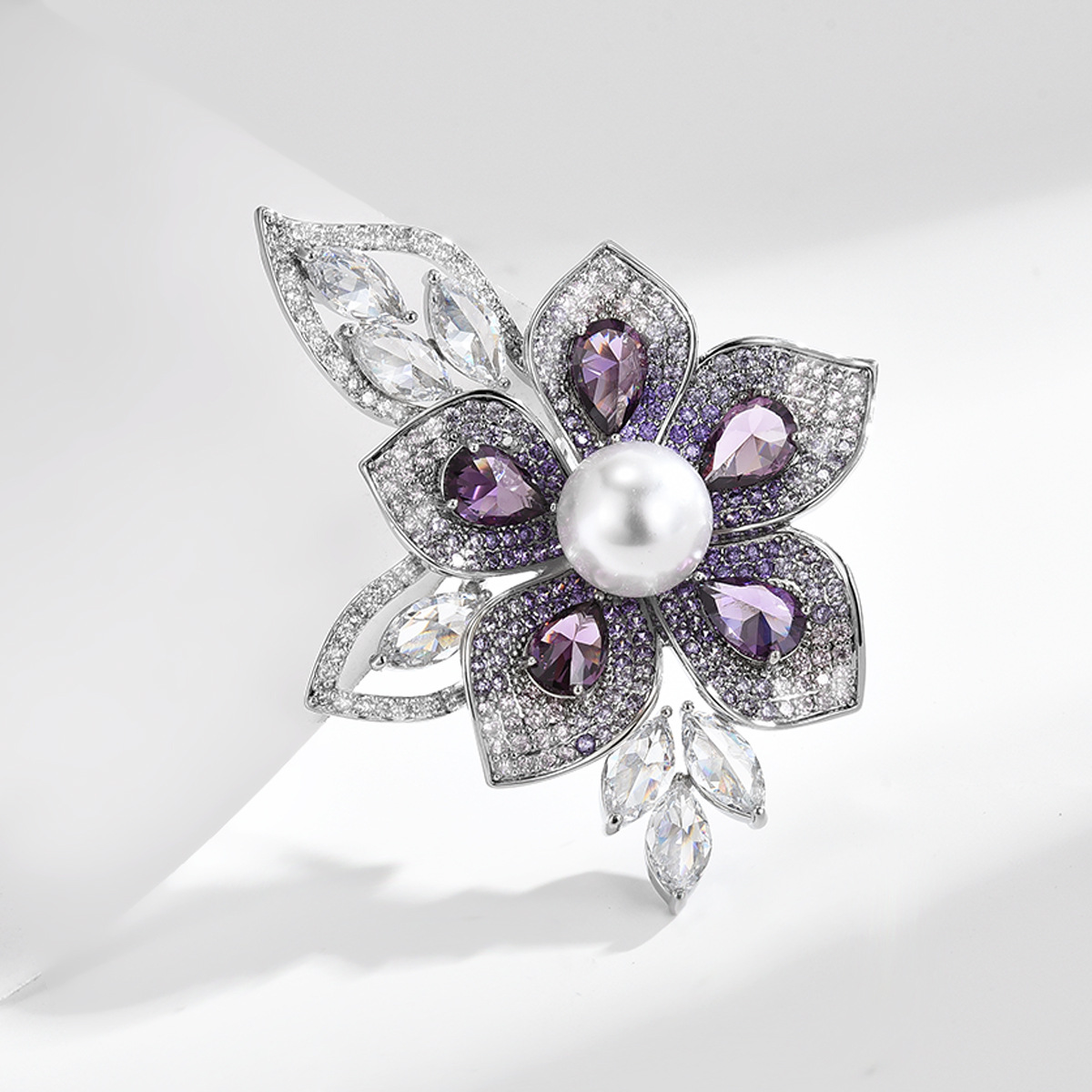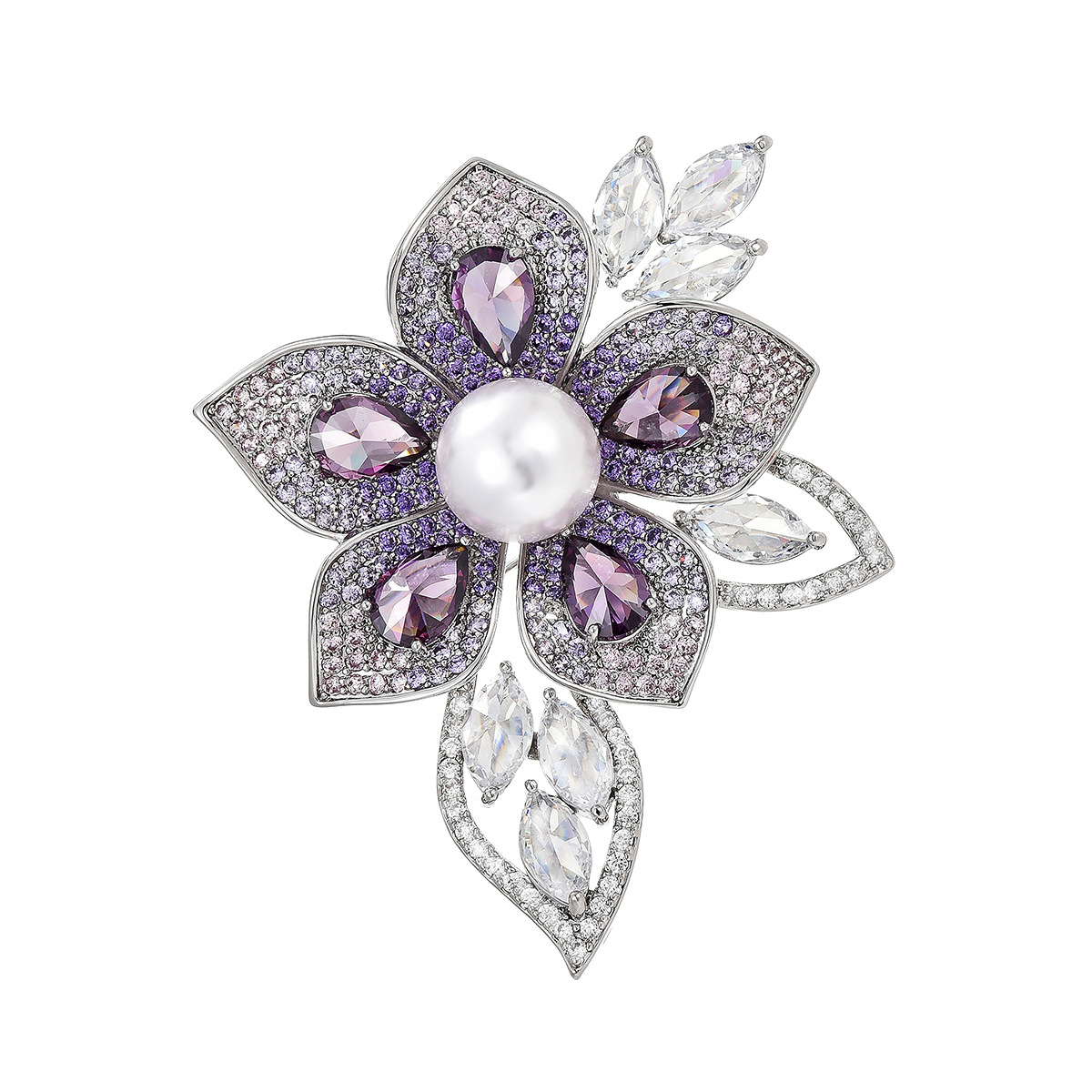 Gioielli spilla alla moda , ottone, with Shell Pearl, Micro spianare cubic zirconia & per la donna, argento, 55x58mm, Venduto da PC