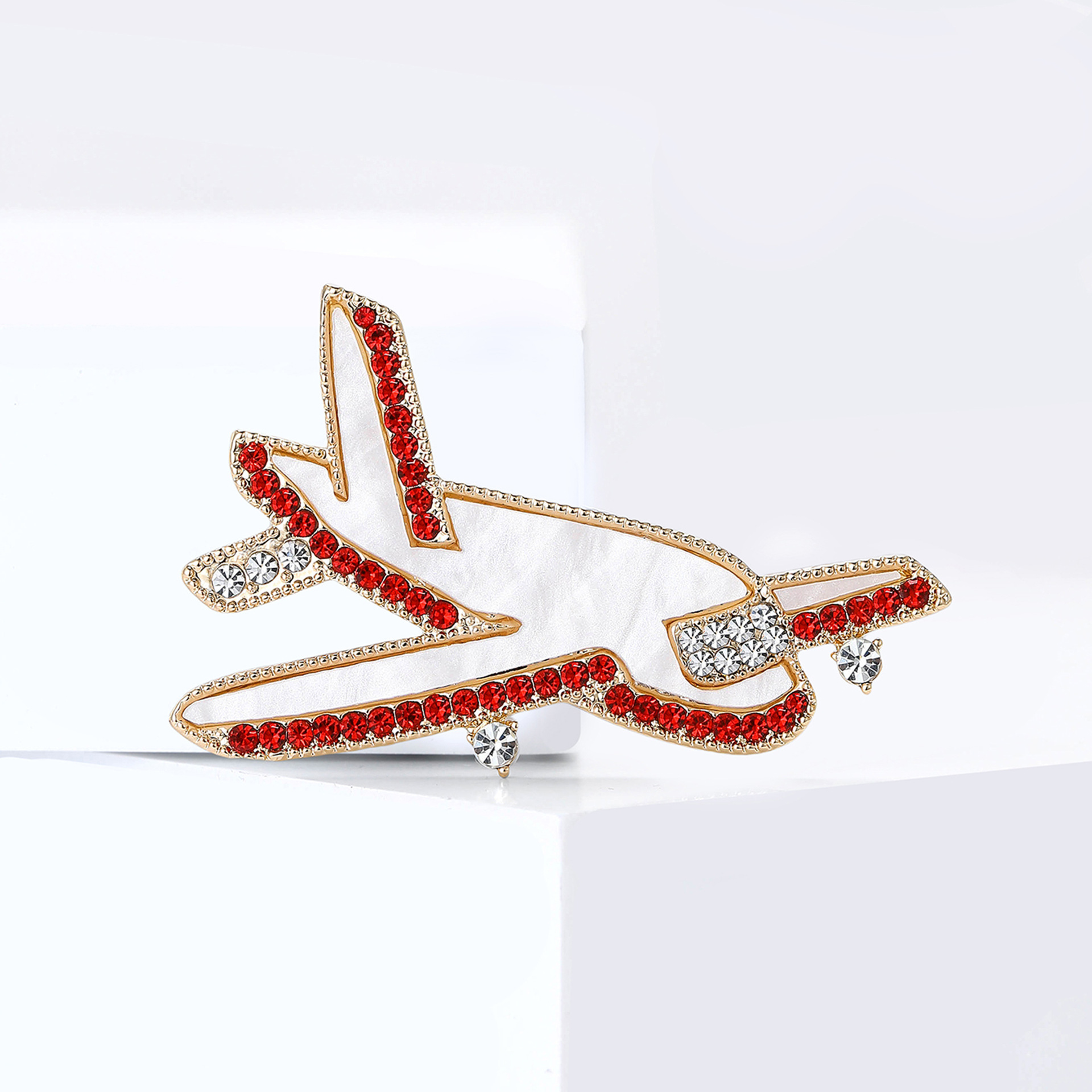 Spille a strass, lega in zinco, with conchiglia, aroplano, placcato color oro, per la donna & con strass, rosso, assenza di nichel,piombo&cadmio, Venduto da PC