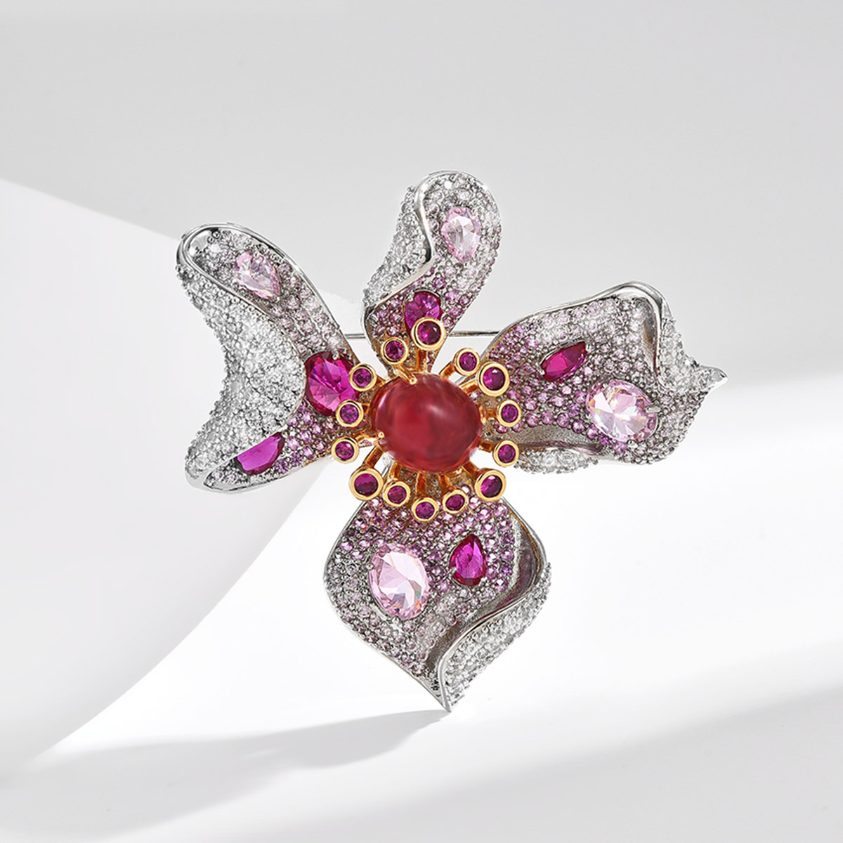 Cubic Zirconia Spilla, ottone, placcato, Micro spianare cubic zirconia & per la donna, argento, 54x55mm, Venduto da PC