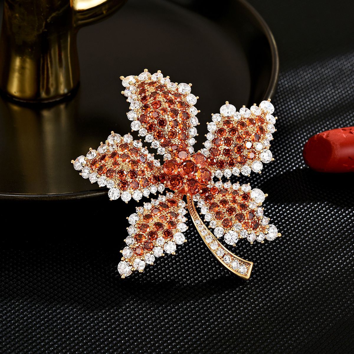 Cubic Zirconia Spilla, ottone, placcato, Micro spianare cubic zirconia & per la donna, dorato, 61x53mm, Venduto da PC
