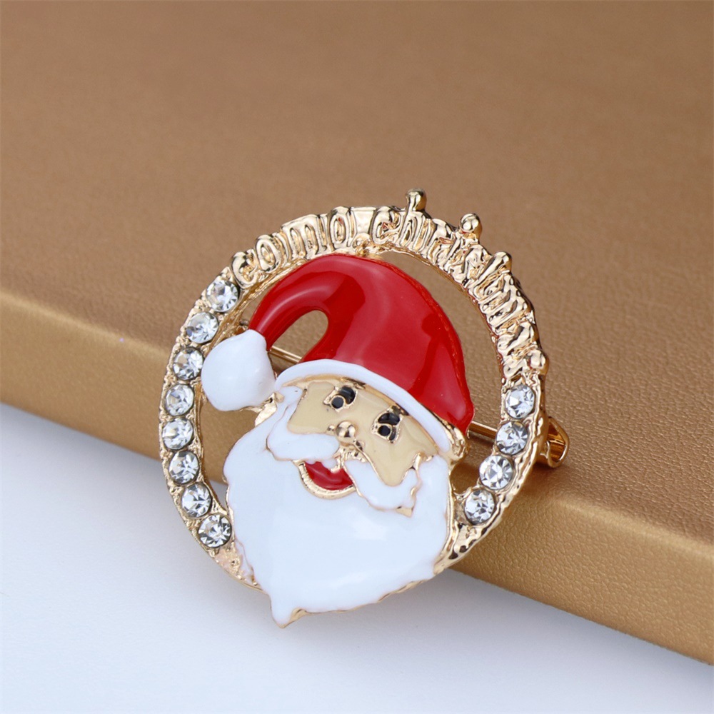 Spille di Natale, lega in zinco, Babbo Natale, placcato, gioielli di moda & smalto & con strass, colori misti, assenza di nichel,piombo&cadmio, 35x35mm, Venduto da PC