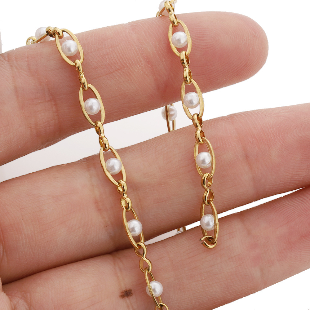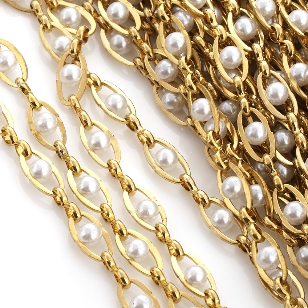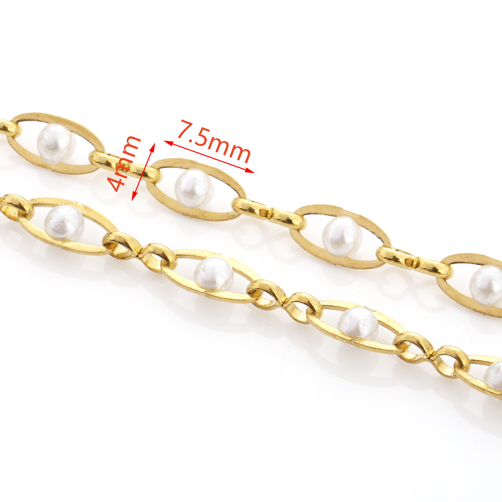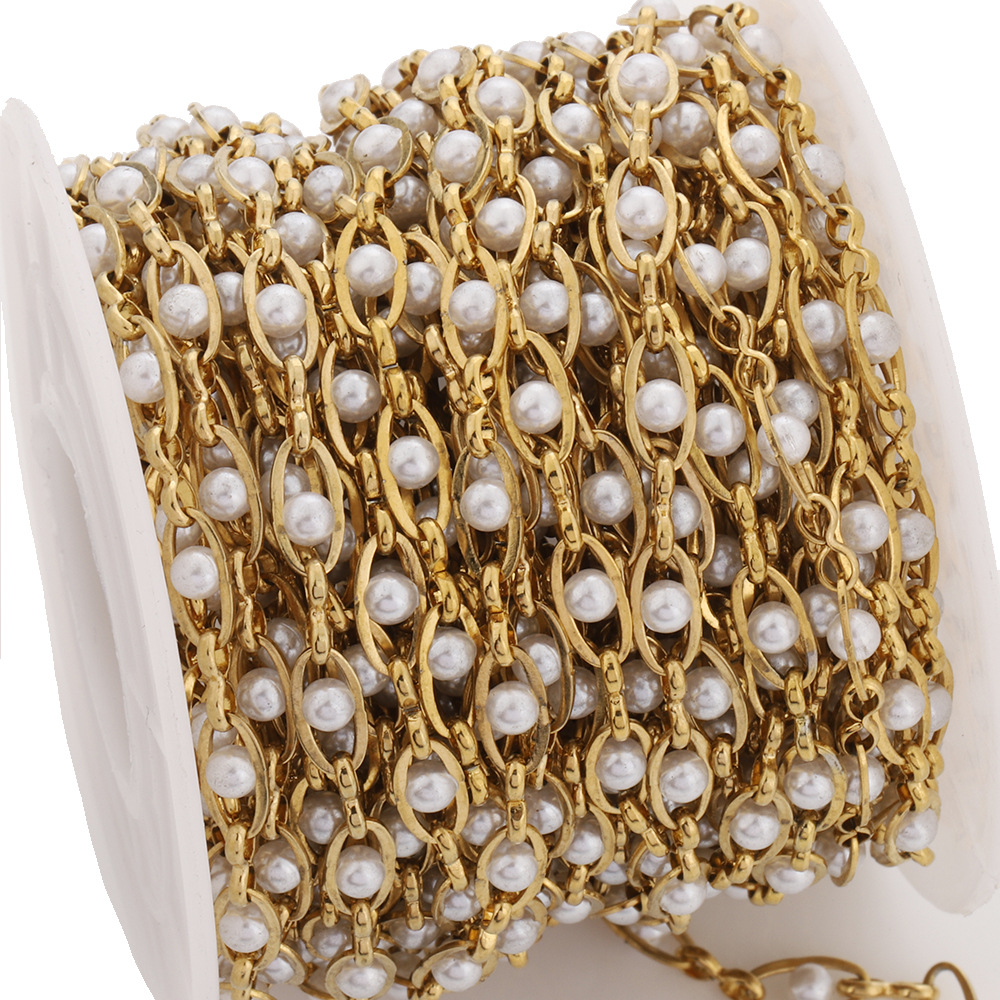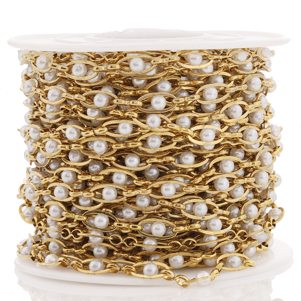 Catena di gioielli in acciaio inox, 304 acciaio inox, with perla in plastica, placcato color oro, DIY, Lunghezza 1 m, Venduto da m