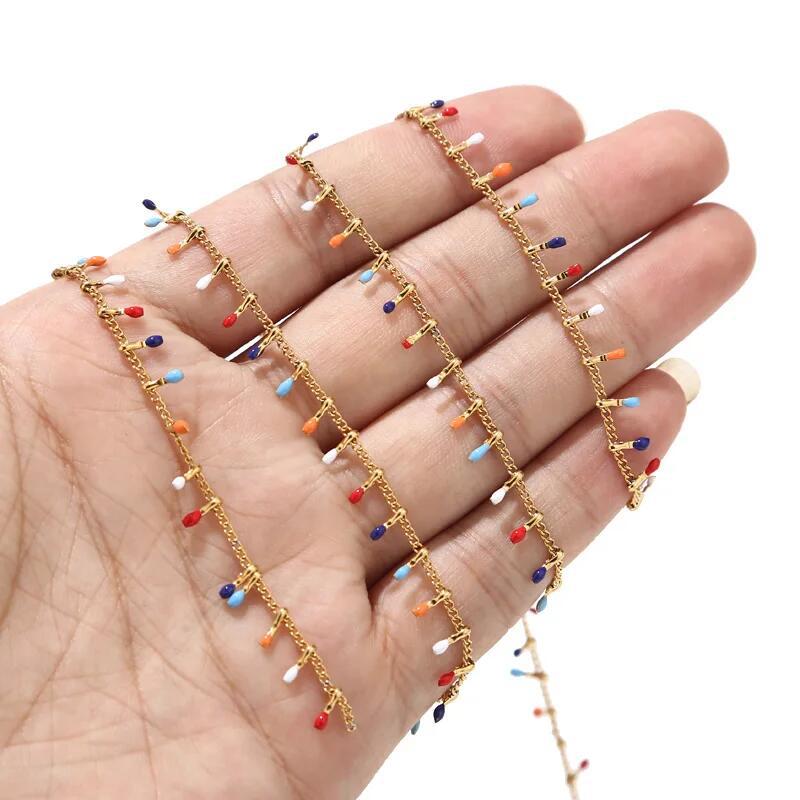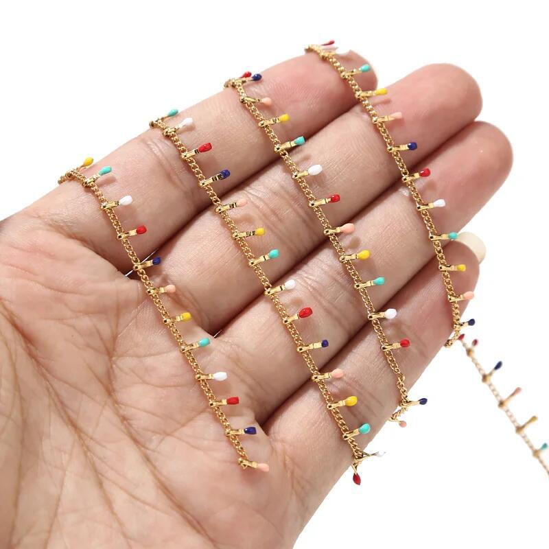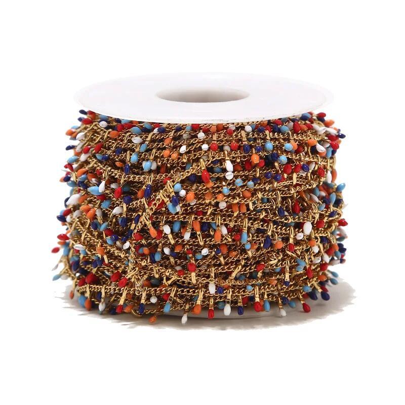 Catena di gioielli in acciaio inox, 304 acciaio inox, placcato color oro, DIY & smalto, colori misti, Venduto da m