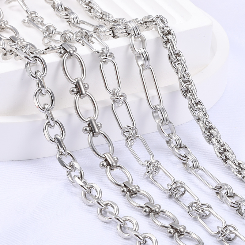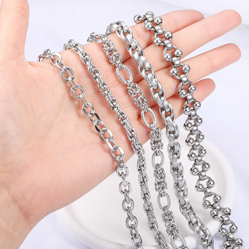 1:Steel color square chain 1.2x6mm2:Steel color handmade egg buckle chain 6.5mm3:Steel color hand knottie chain 1.3x6mm4:Steel square chain 1.6x8mm5:Steel pattern twist chain 8.8mm6:Steel color indented twist chain 6mm7:Steel color hand-indented egg buckle chain 8mm8:Steel color handmade double bead chain 14mm9:Steel color manual clamping rod chain 7.6mm12:Steel color oval split chain 8mm13:Steel color oval split chain 7mm14:Steel color handmade egg buckle chain 8mm
