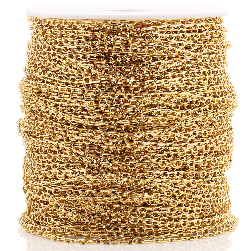 Catena ovale in acciaio inox, 304 acciaio inox, placcato color oro, DIY, nessuno, 0.4-0.6mm, 5m/borsa, Venduto da borsa