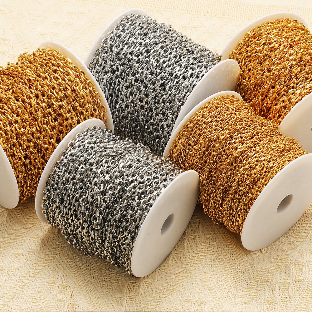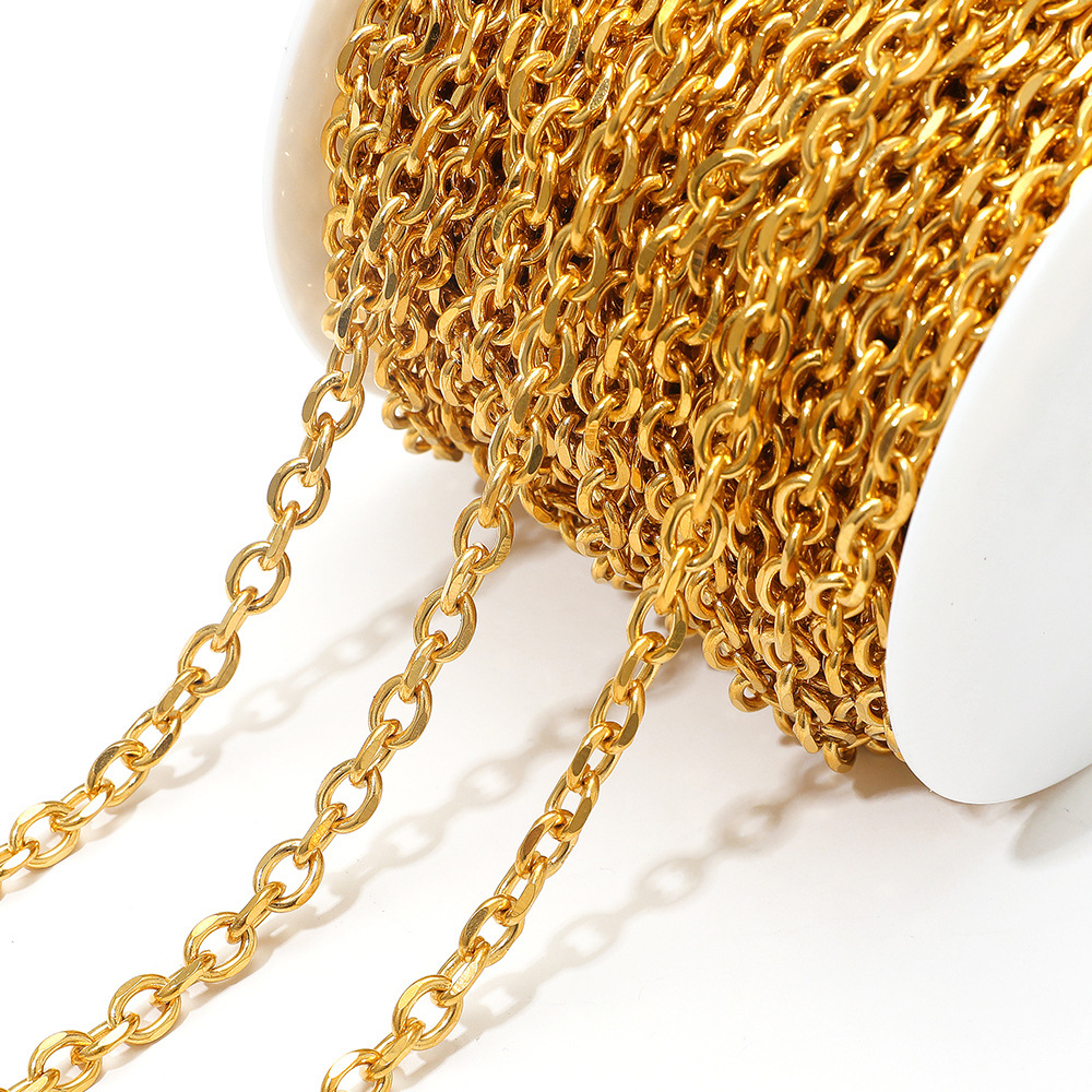 Catena ovale in acciaio inox, 304 acciaio inox, placcato color oro, DIY, nessuno, Venduto da m