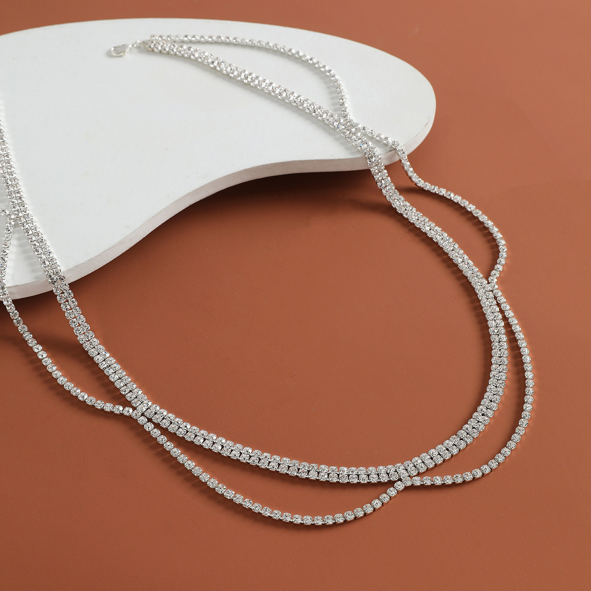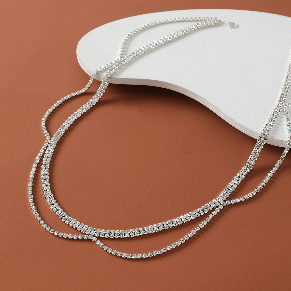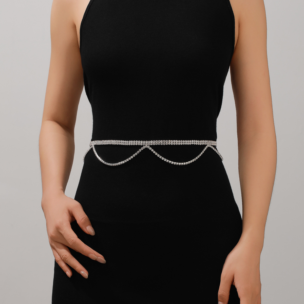 Cintura decorativa, lega in zinco, per la donna & con strass & cavo, argento, Lunghezza Appross. 110 cm, Venduto da PC