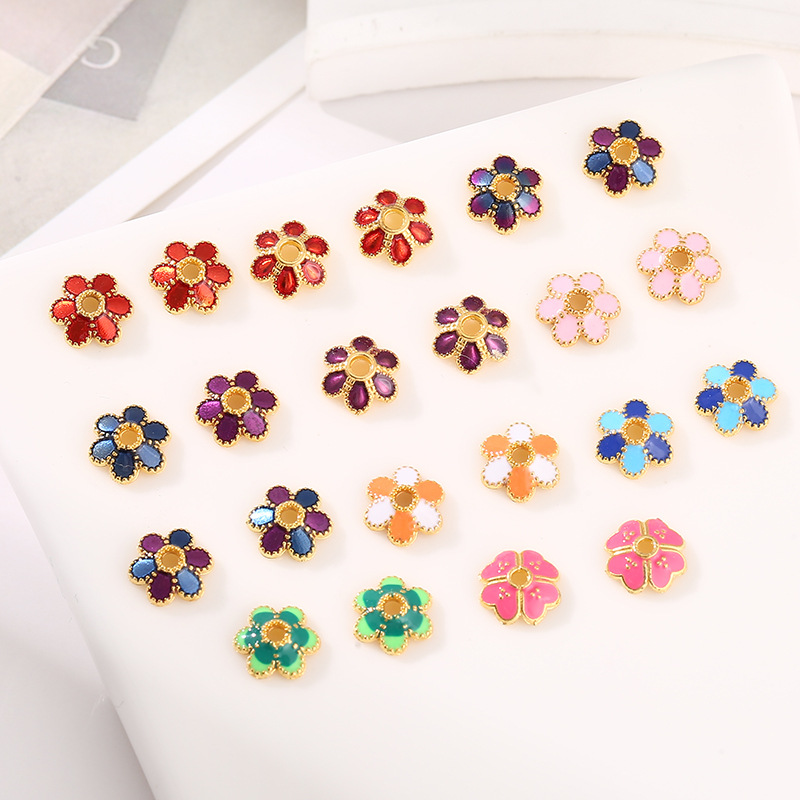 Lo zinco in lega tallone Cap, lega in zinco, Fiore, placcato color oro, DIY & smalto, nessuno, assenza di nichel,piombo&cadmio, 8mm, Foro:Appross. 2mm, 100PC/borsa, Venduto da borsa