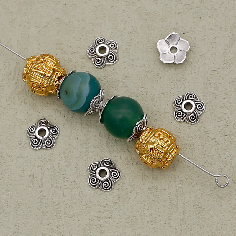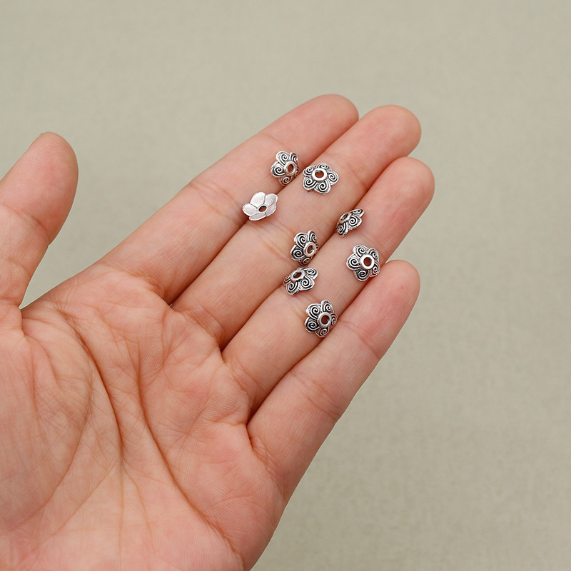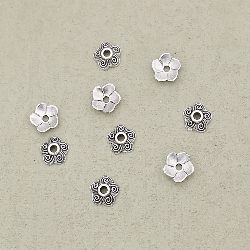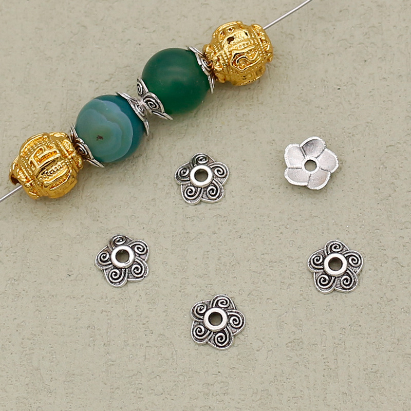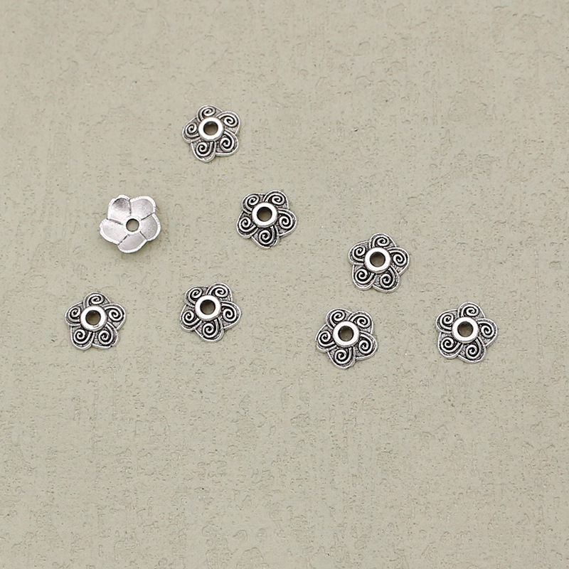 Lo zinco in lega tallone Cap, lega in zinco, Fiore, placcato color argento, DIY, argento, assenza di nichel,piombo&cadmio, 8mm, Foro:Appross. 1.5mm, Venduto da PC