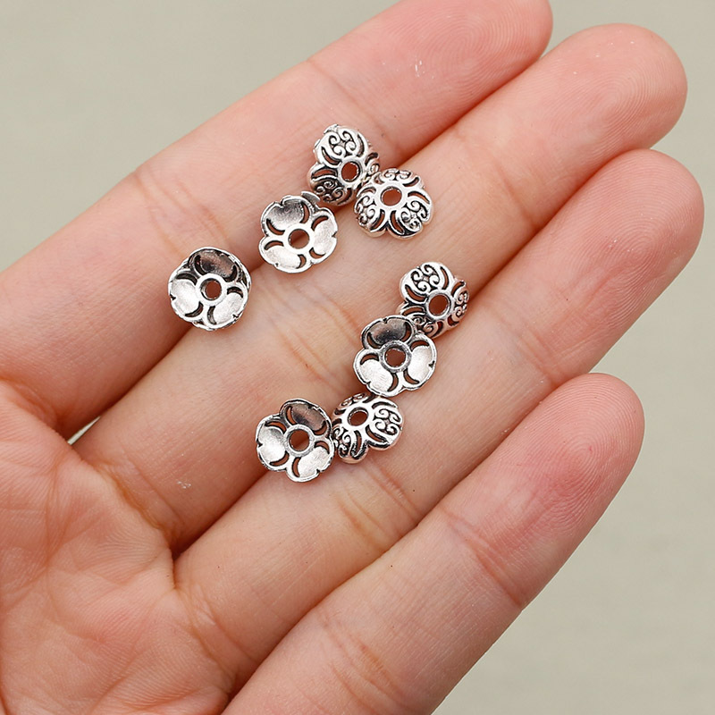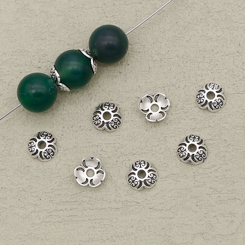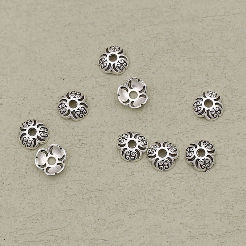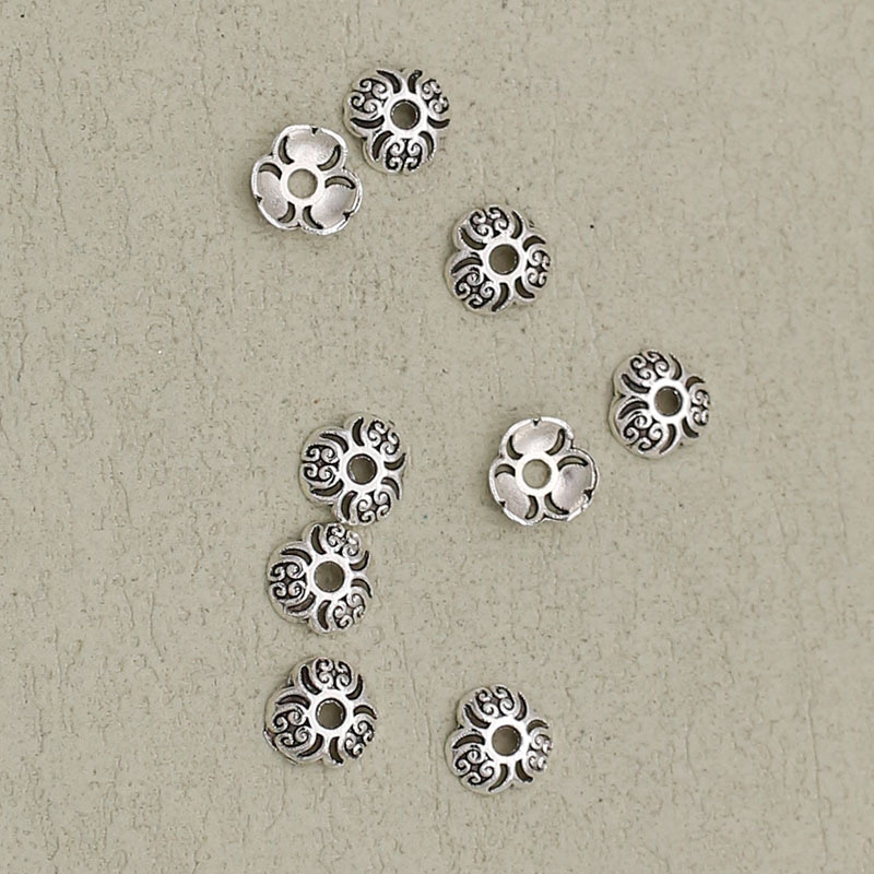 Lo zinco in lega tallone Cap, lega in zinco, Fiore, placcato color argento, DIY, argento, assenza di nichel,piombo&cadmio, 8mm, Foro:Appross. 1.5mm, Venduto da PC