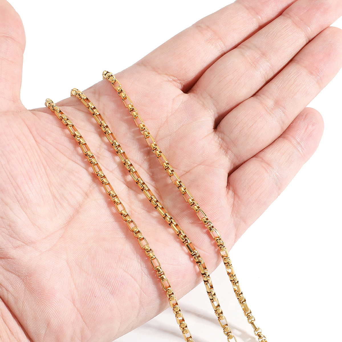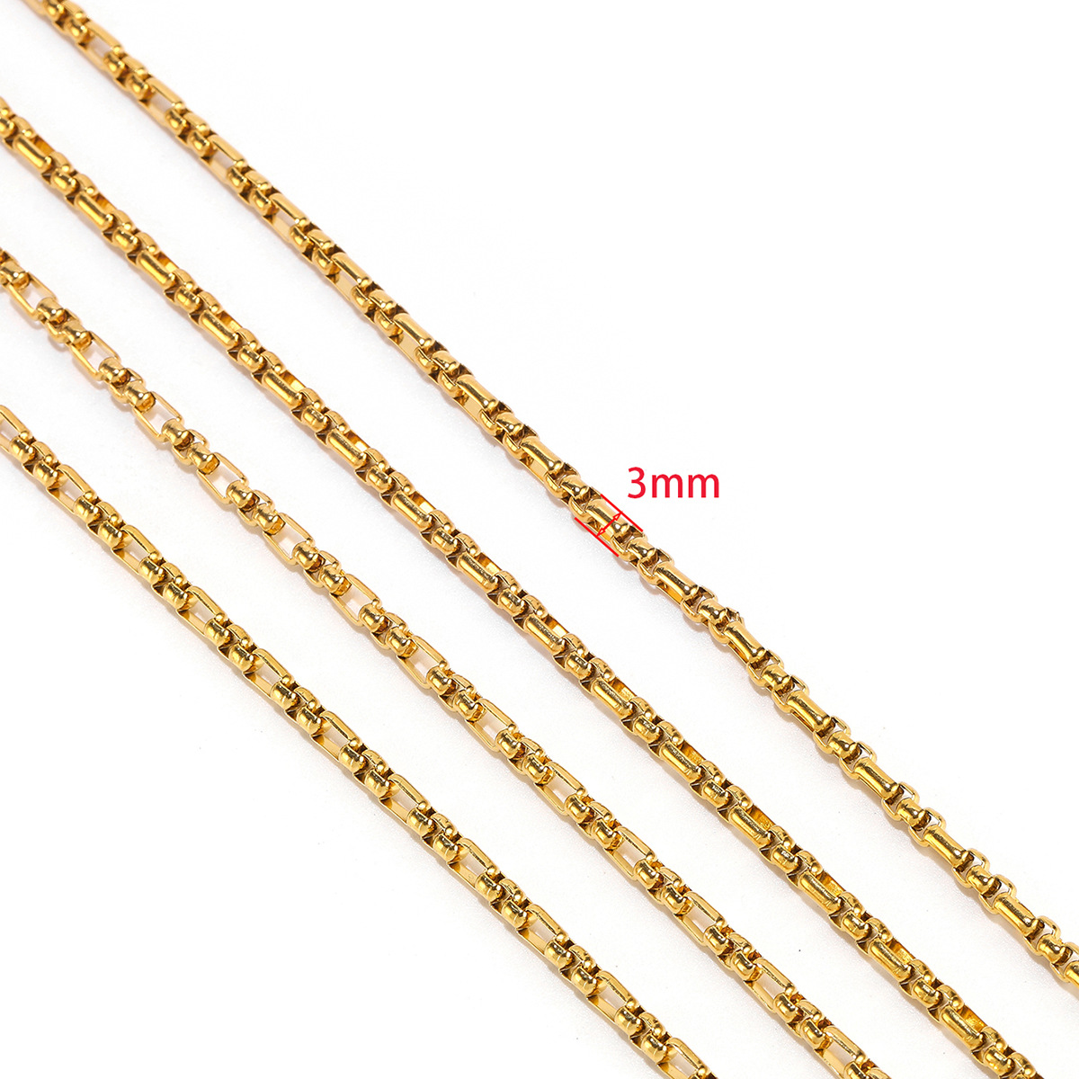 1:3mm wide 3: 1 square pearl chain gold2:3mm wide 3: 1 square pearl chain steel color