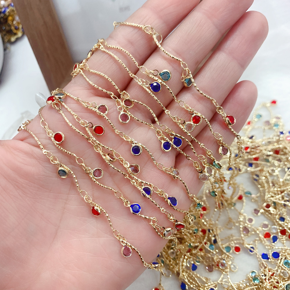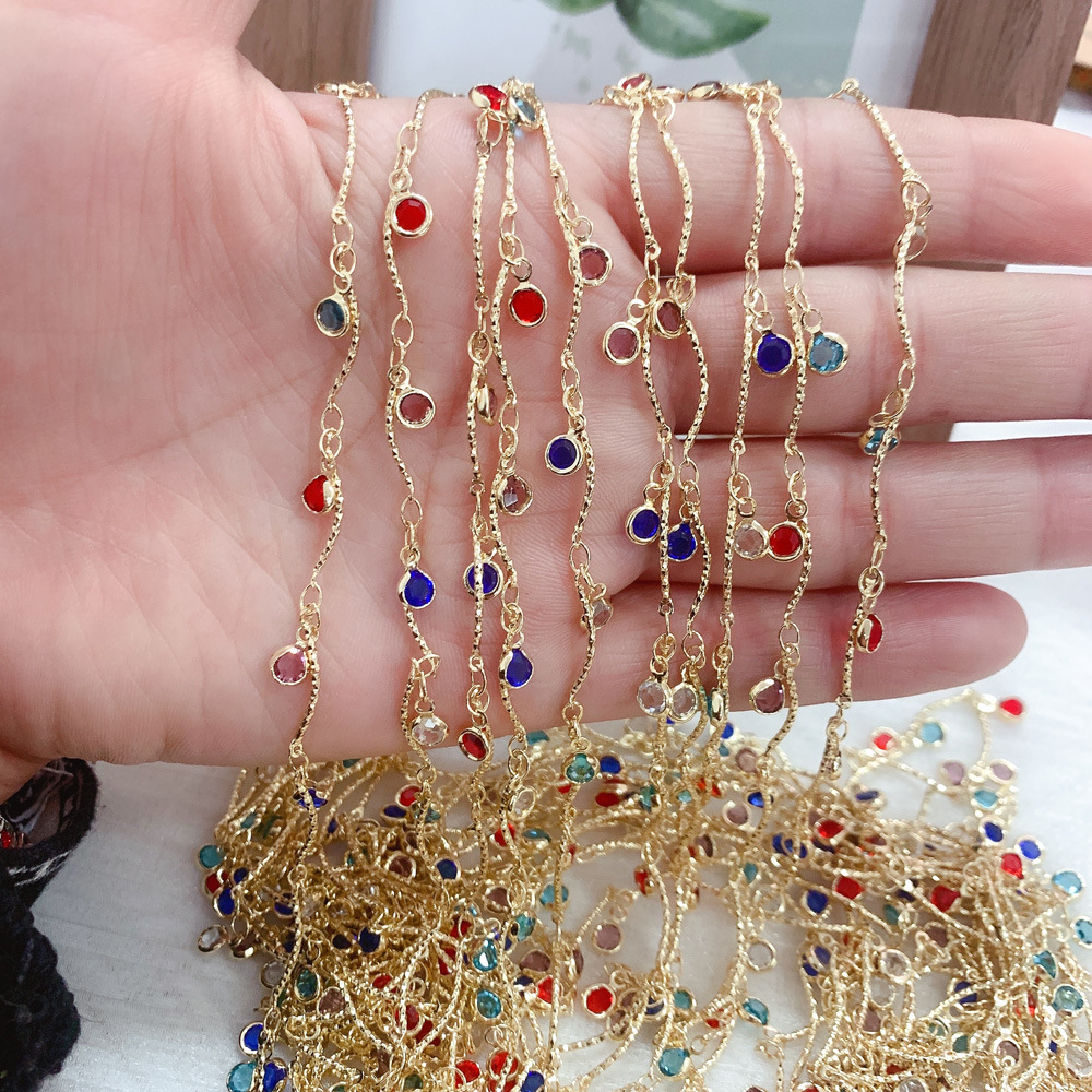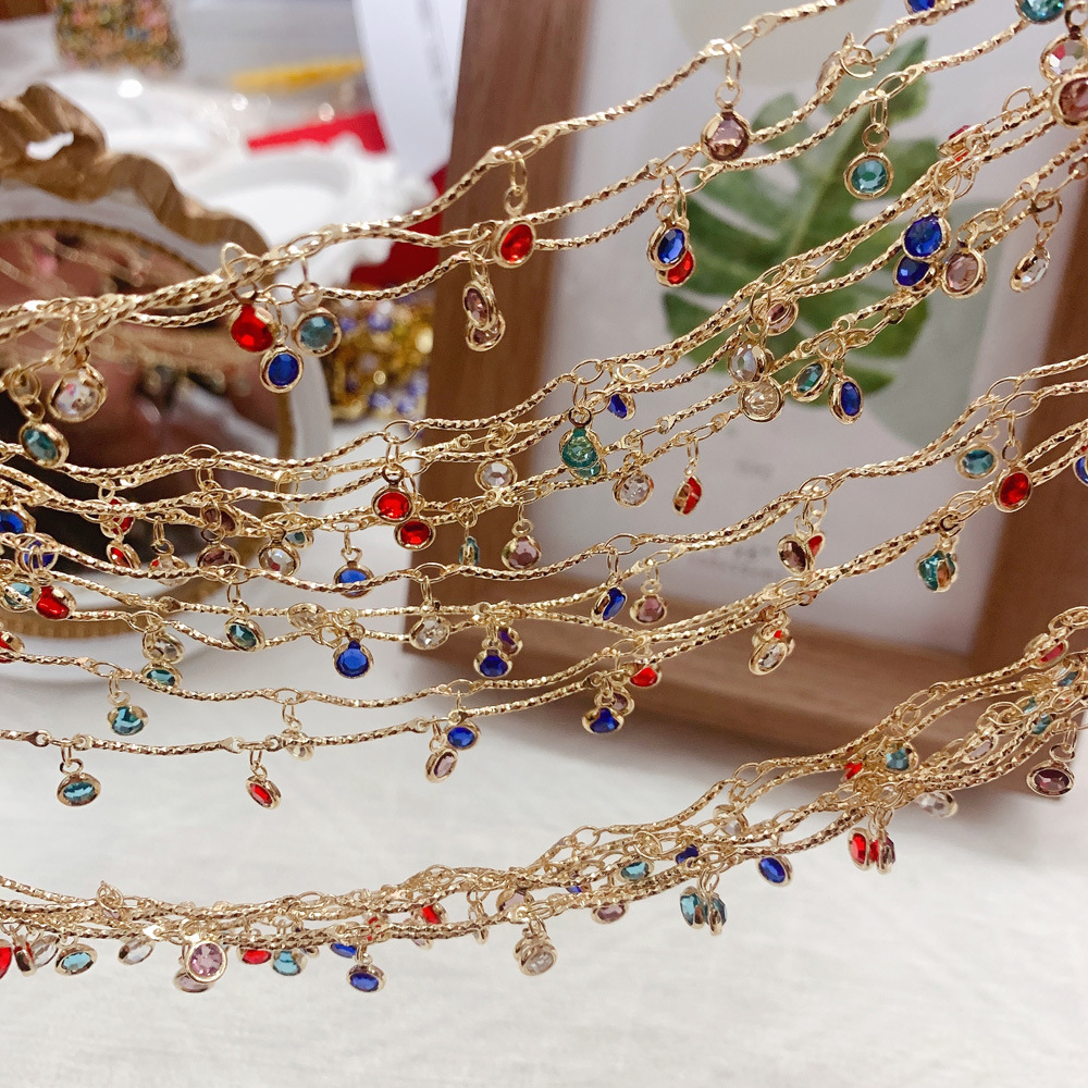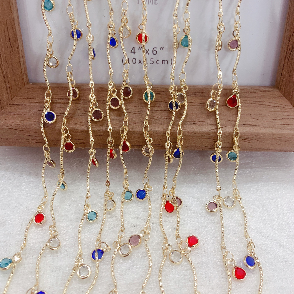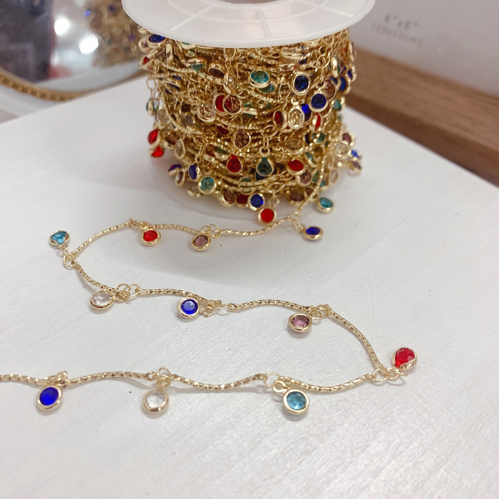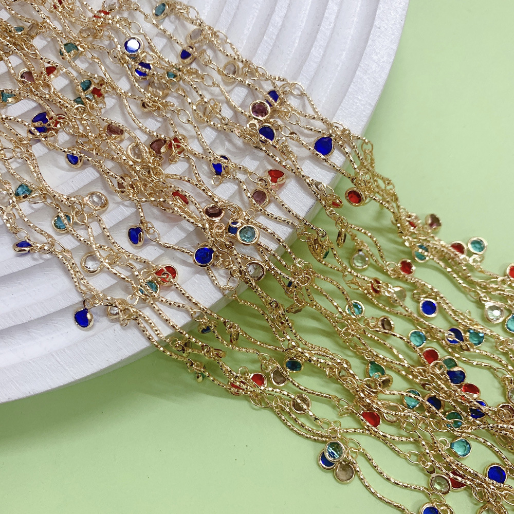 Catena decorativa in ottone, with cubico zircone, placcato color oro, DIY, colori misti, assenza di nichel,piombo&cadmio, 10m/borsa, Venduto da borsa