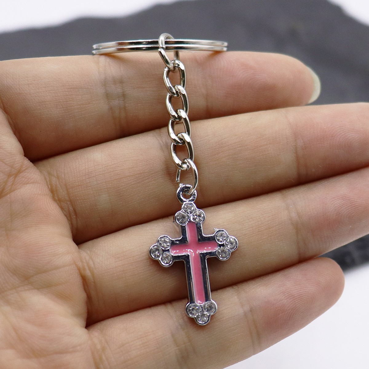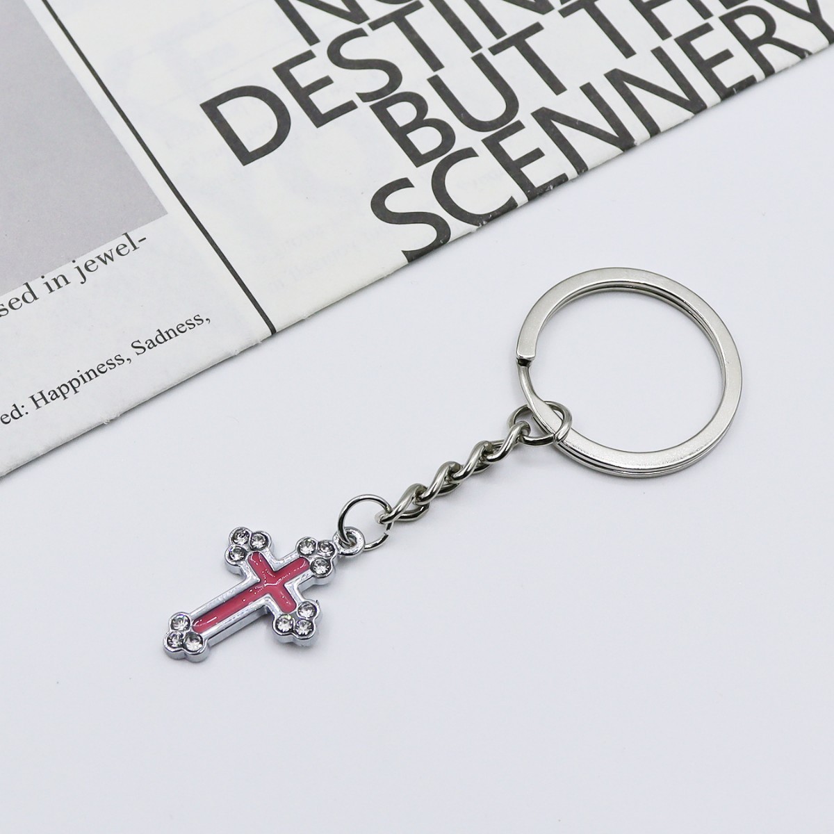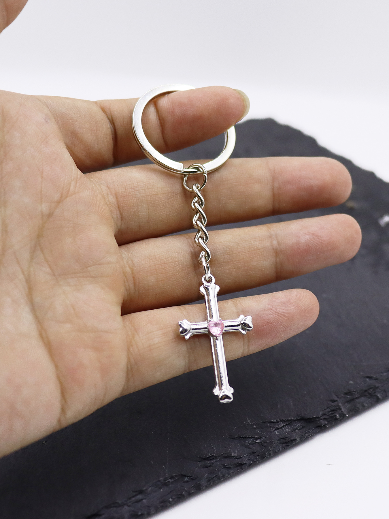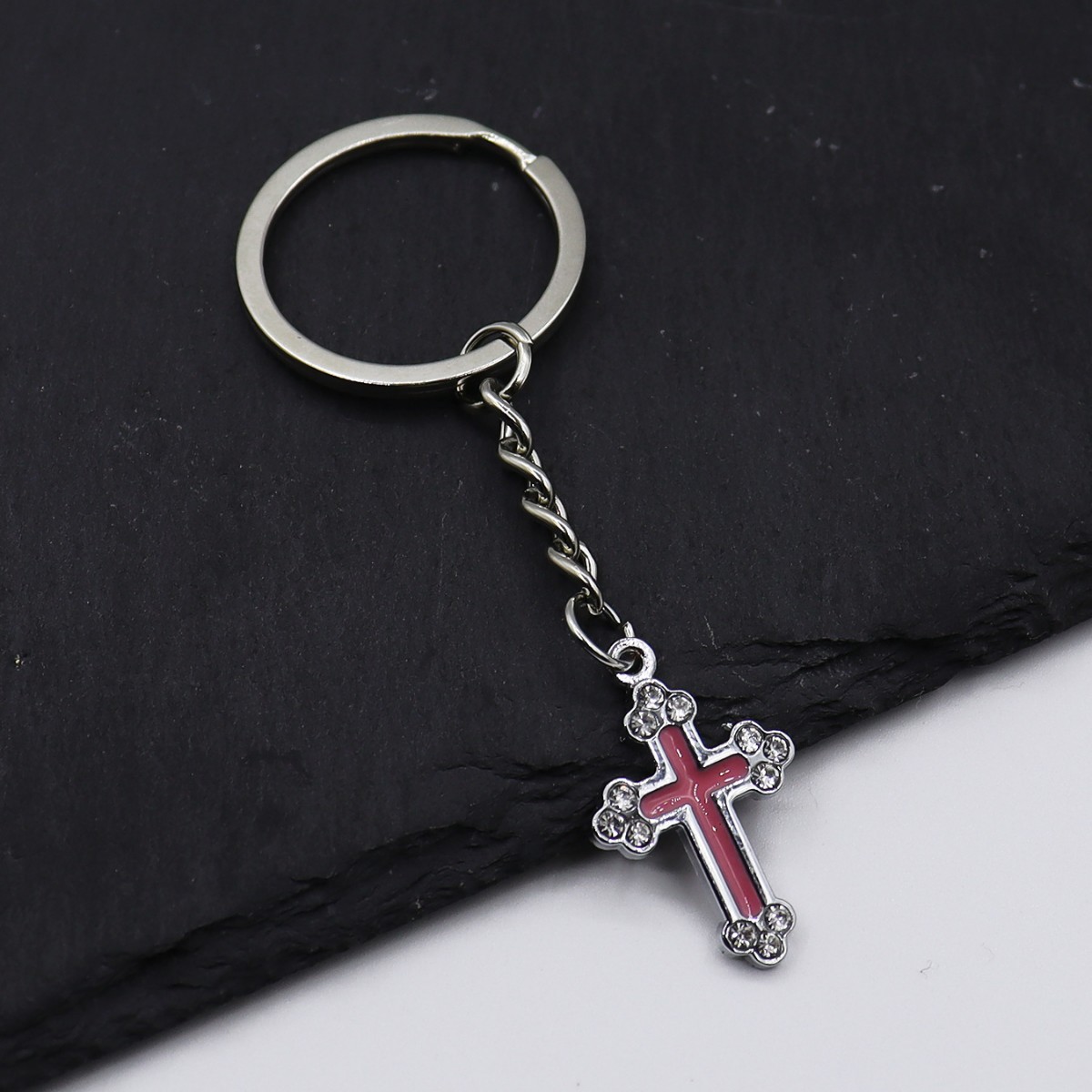 Chiave catena, lega in zinco, Croce, placcato color oro, gioielli di moda & smalto & con strass, nessuno, Venduto da PC