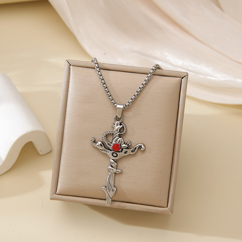 Chiave catena, lega in zinco, with Rubino, Croce, placcato color oro, gioielli di moda, nessuno, Venduto da PC